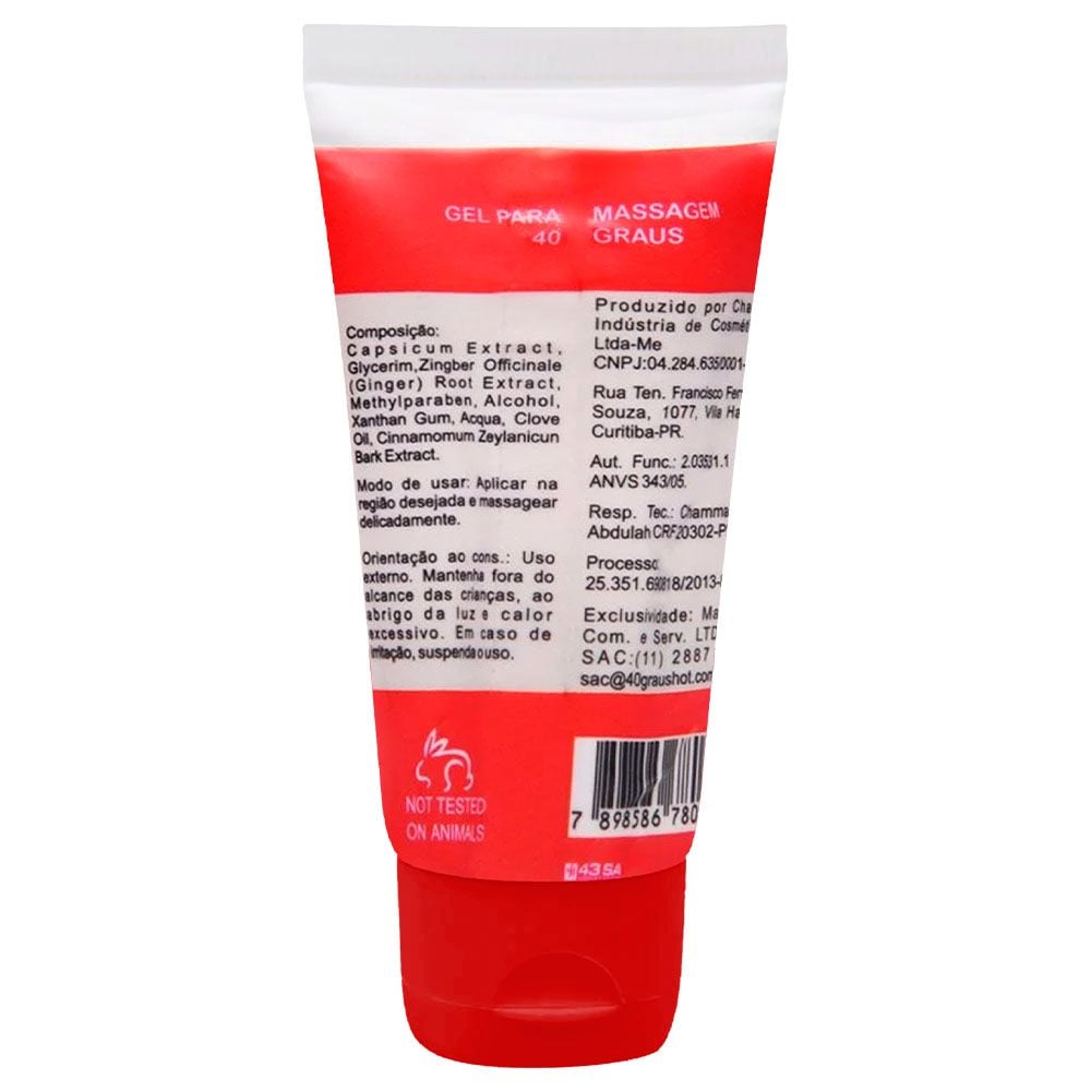 Produto: Gel Estimulante com Efeito Térmico Nome: 40Graus Super Excitante Conteúdo: 15g Marca: 40 Graus Textura: Gel transparente com toque leve e deslizante