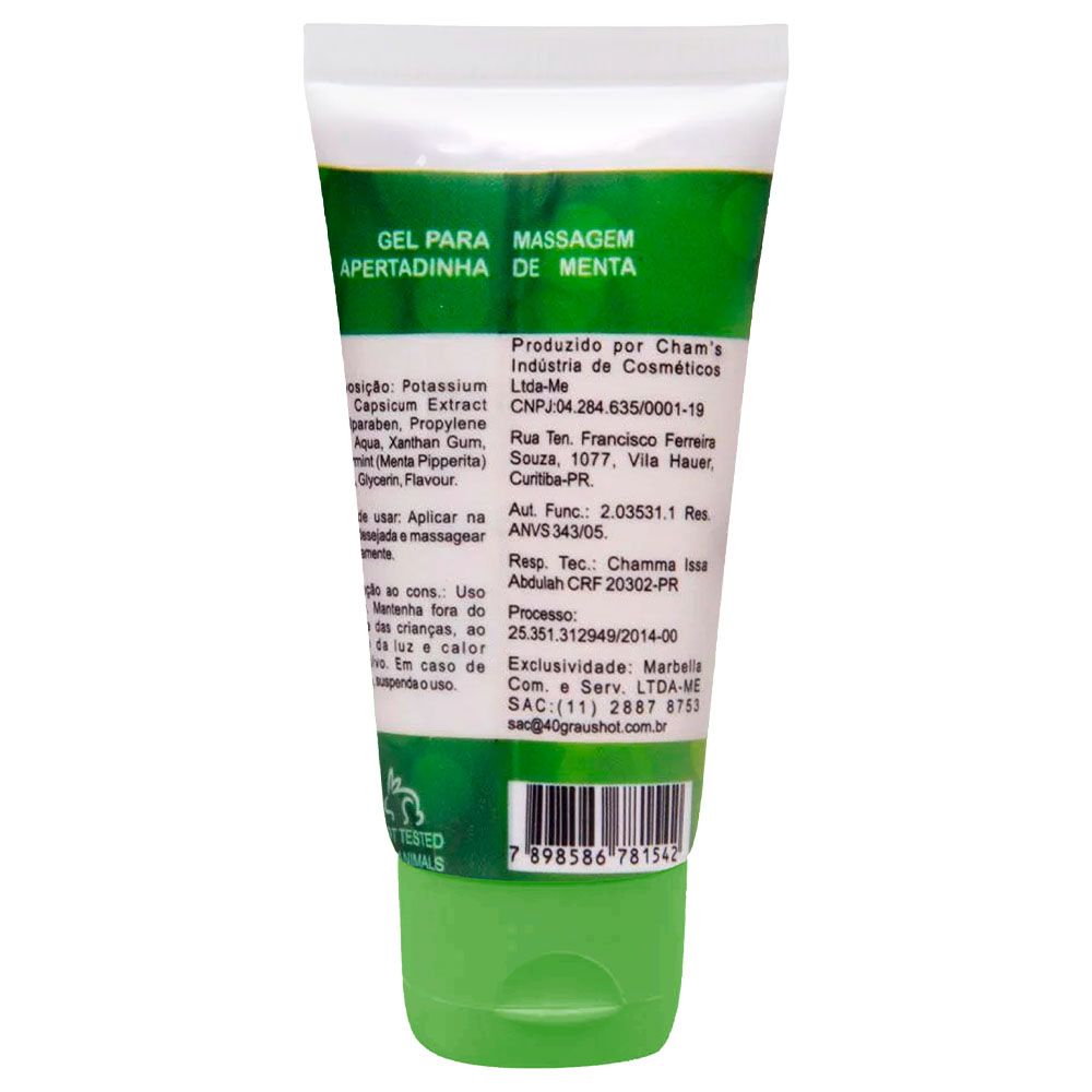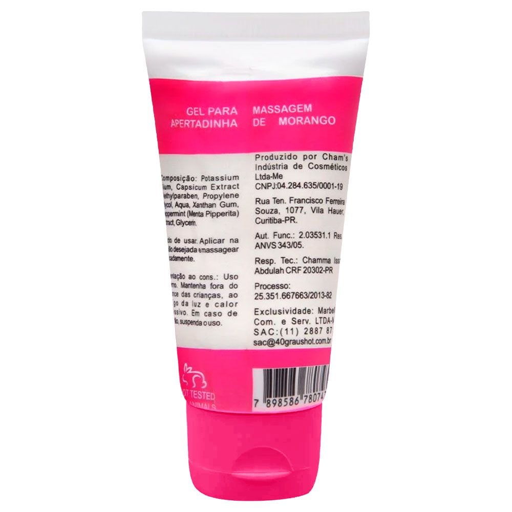 Produto: Gel íntimo adstringente Nome: Apertadinha Aromático Conteúdo: 15g Marca: 40 Graus Textura: Gel leve, perfumado e confortável