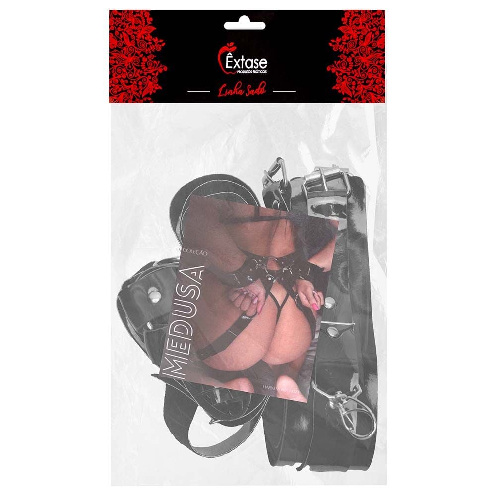 Desperte o poder da sedução com o Arreio Harness Medusa Sensual da Êxtase . Produzido em couro sintético laminado de alta qualidade , com visual que imita vinil, este harness combina resistência, conforto e um visual extremamente provocante. Seus componentes metálicos reforçados garantem segurança e durabilidade, tornando-o ideal para experiências intensas e repletas de prazer.