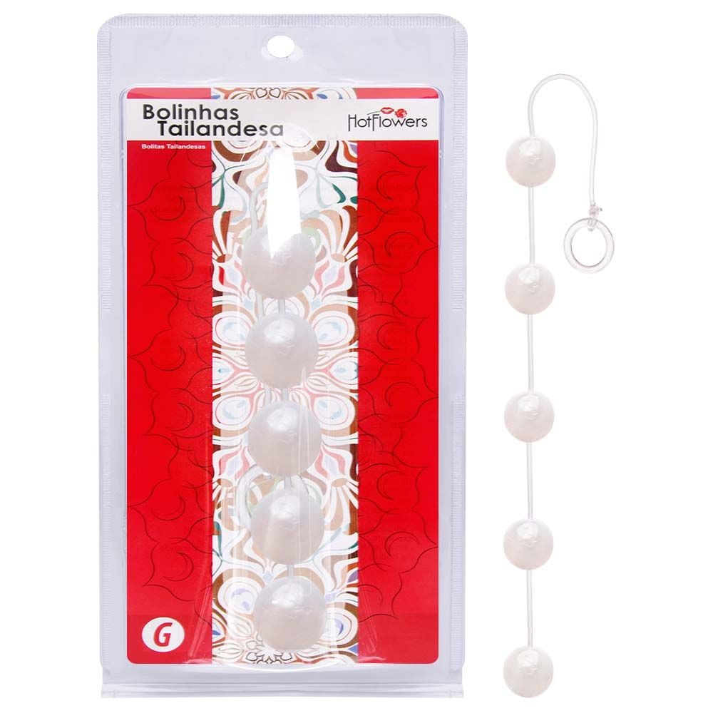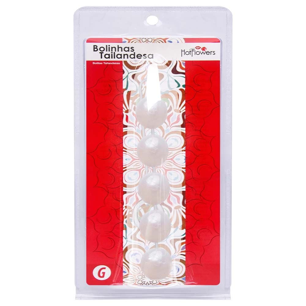 As Bolinhas Tailandesas Grande da Hot Flowers são perfeitas para mulheres que desejam tonificar o assoalho pélvico, prevenir disfunções íntimas e intensificar o prazer sexual. Com cinco bolinhas de plástico rígido, conectadas por um fio de silicone flexível e resistente, este acessório é ideal para exercícios de Kegel e práticas de pompoarismo, com total conforto e segurança.