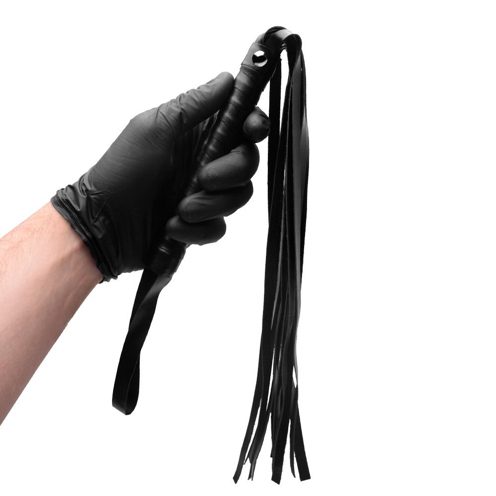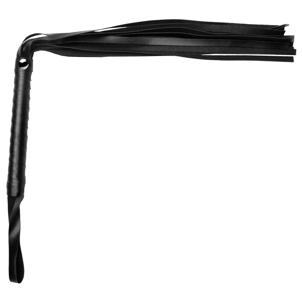 Este chicote apresenta um cabo ergonômico revestido em couro com textura, que proporciona um agarre firme e confortável, ideal para conduzir as sensações com precisão. Suas múltiplas tiras finas em couro sintético criam uma combinação entre leveza e intensidade, oferecendo estímulos variados e envolventes.
