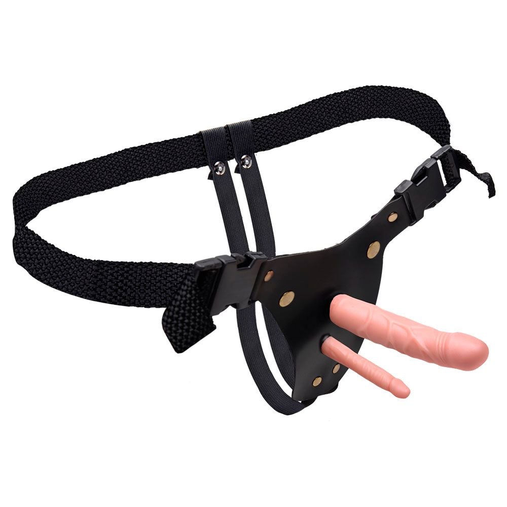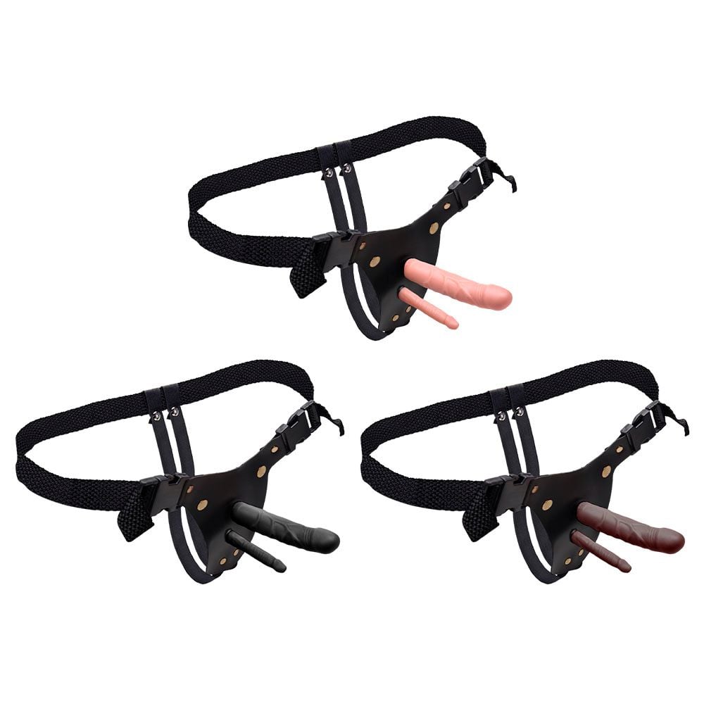 Fixe os pênis introduzindo as ventosas nos furos da cinta.