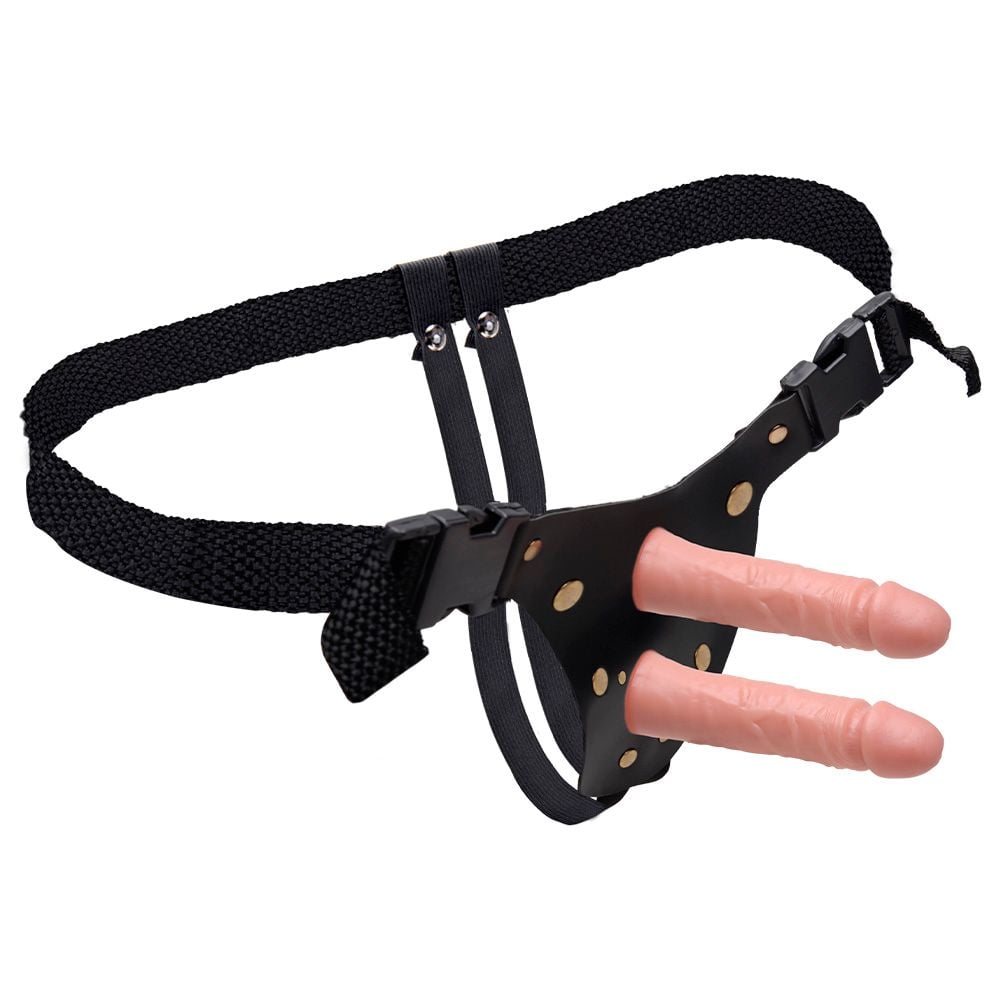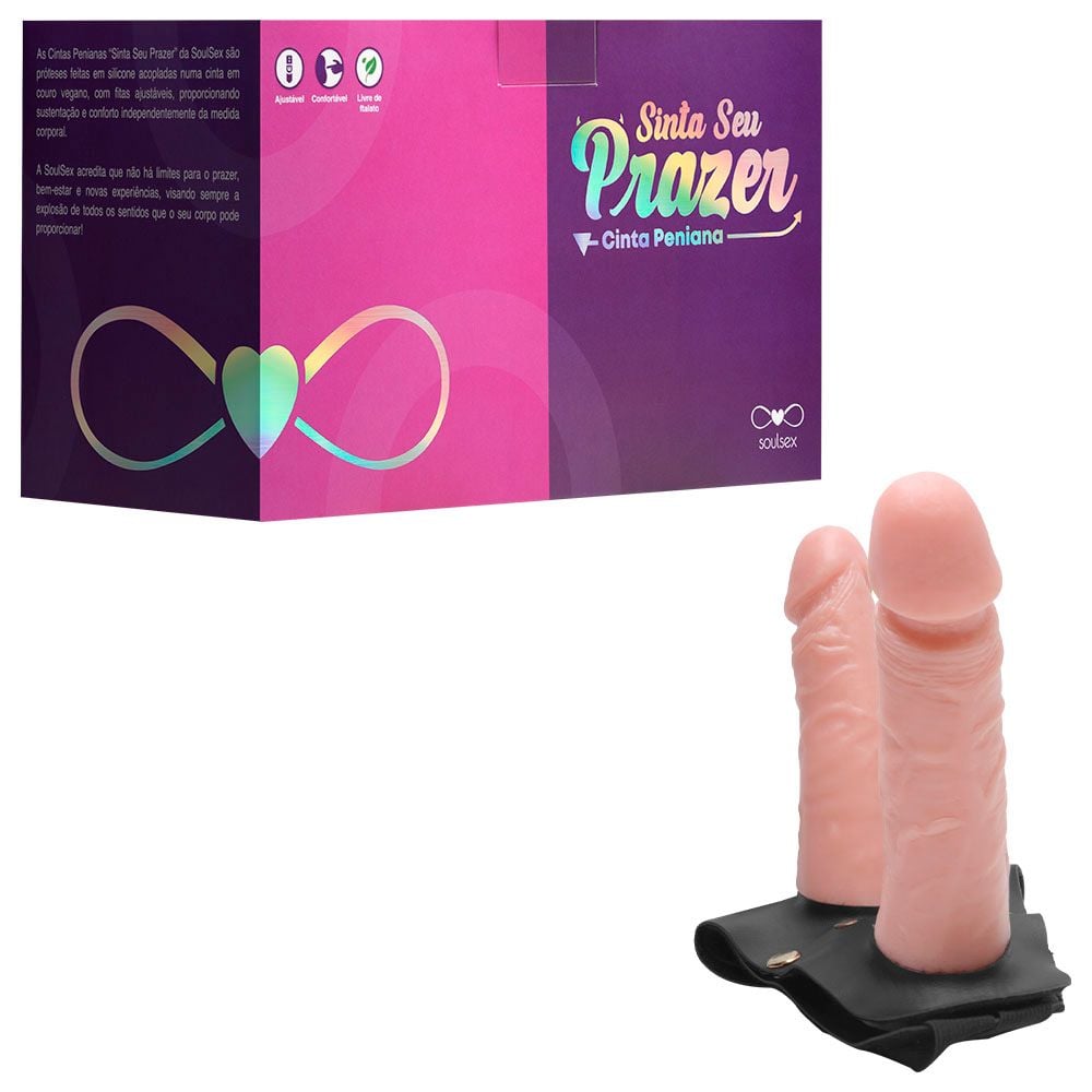 Cinta Ativa Dupla com Pênis Realísticos 16 x 4 cm - Soulsex. Transforme suas noites em momentos de prazer intenso e inovador com a Cinta Ativa Dupla da Soulsex. Ideal para penetração simultânea vaginal e anal, esta cinta peniana ajustável é confeccionada em material reforçado, com fivelas que garantem um ajuste seguro e confortável ao corpo. Acompanha duas próteses realísticas, feitas de silicone de alta qualidade, com glandes definidas e veias salientes, oferecendo uma sensação autêntica e prazerosa. As próteses podem ser usadas separadamente da cinta, proporcionando versatilidade em suas experiências íntimas.