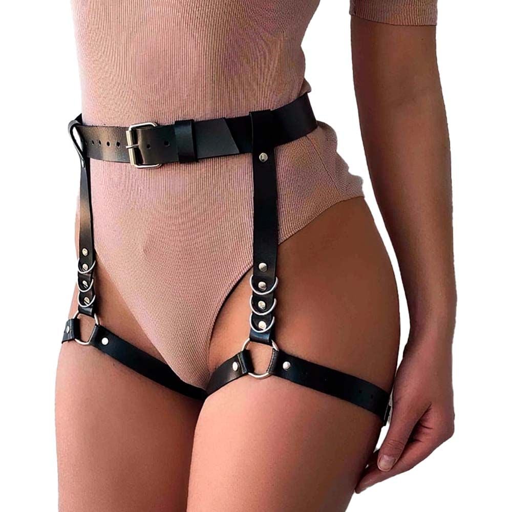 Confeccionada em couro sintético de alta qualidade, esta cinta conta com rebites, fivelas metálicas e correntes que proporcionam um ajuste seguro e totalmente personalizável. A funcionalidade vai além do visual: os pulsos podem ser presos à cintura, criando uma experiência sensorial intensa e imobilizadora.