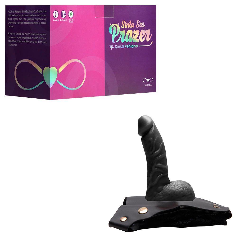 Cinta Peniana com Pênis e Escroto 16 x 4,5 cm - Soulsex. A Cinta Peniana com Pênis e Escroto da Soulsex é projetada para oferecer uma experiência realista e confortável, seja para a mulher ativa ou para a inversão de papéis. A cinta ajustável é feita em material reforçado e possui fivelas que garantem um ajuste seguro e confortável. Acompanha uma prótese realística em formato de pênis, com glande definida, veias salientes, escroto e ventosa, proporcionando uma sensação autêntica. A ventosa resistente permite que a prótese seja fixada em superfícies lisas e não porosas, oferecendo versatilidade no uso. Além disso, a prótese pode ser usada separadamente da cinta, ampliando as possibilidades de prazer.