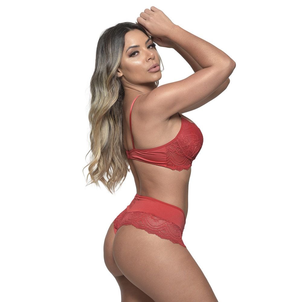• Sutiã com frente rendada: Design elegante com renda em toda a parte frontal, que valoriza o busto com delicadeza.