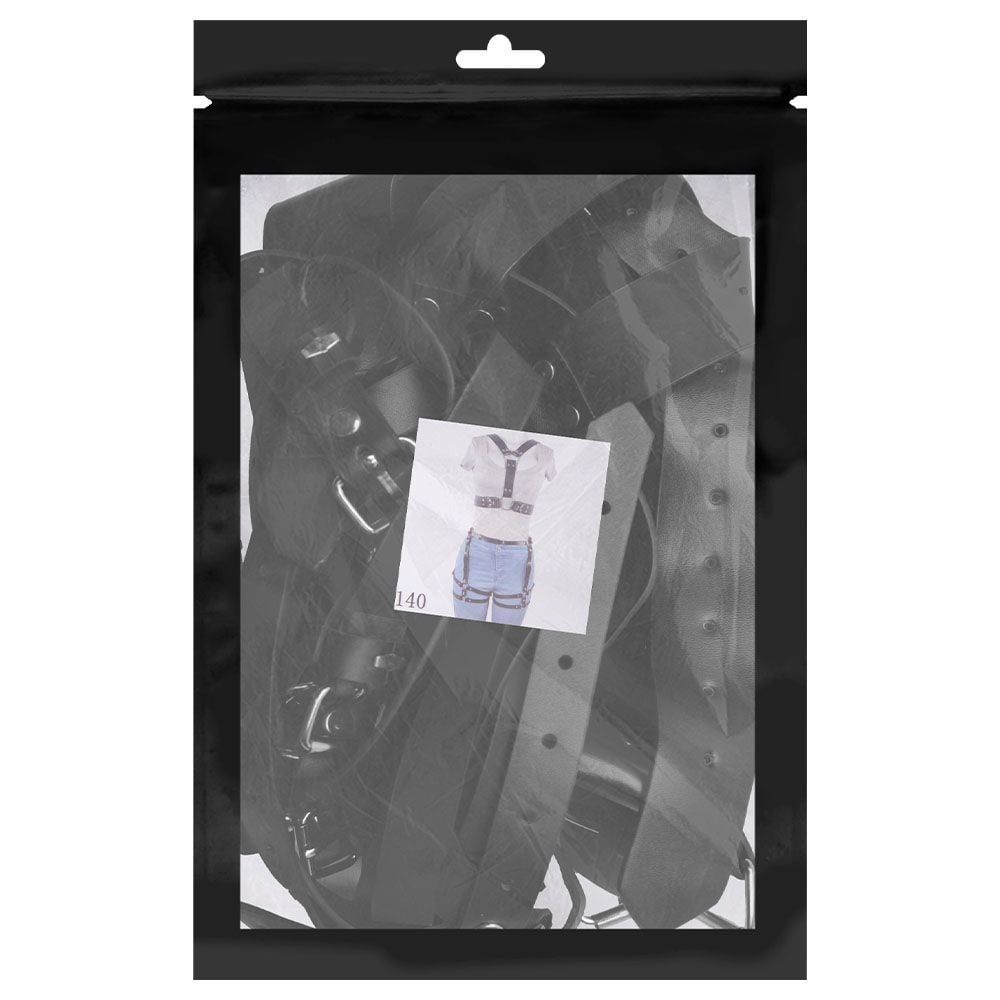 Confeccionado em couro sintético com rebites estratégicos e fivelas metálicas ajustáveis, este conjunto sensual une o harness peitoral ao charme irresistível da cinta liga. Seu design abraça o corpo com firmeza e elegância, revelando um visual que instiga e domina os sentidos.