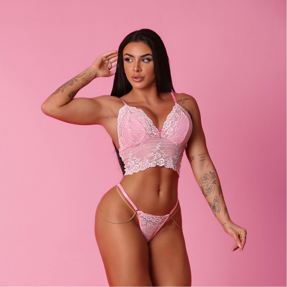 • Design Cropped Rendado: Top estilo cropped com renda delicada e sensual, proporcionando um visual marcante e confortável.