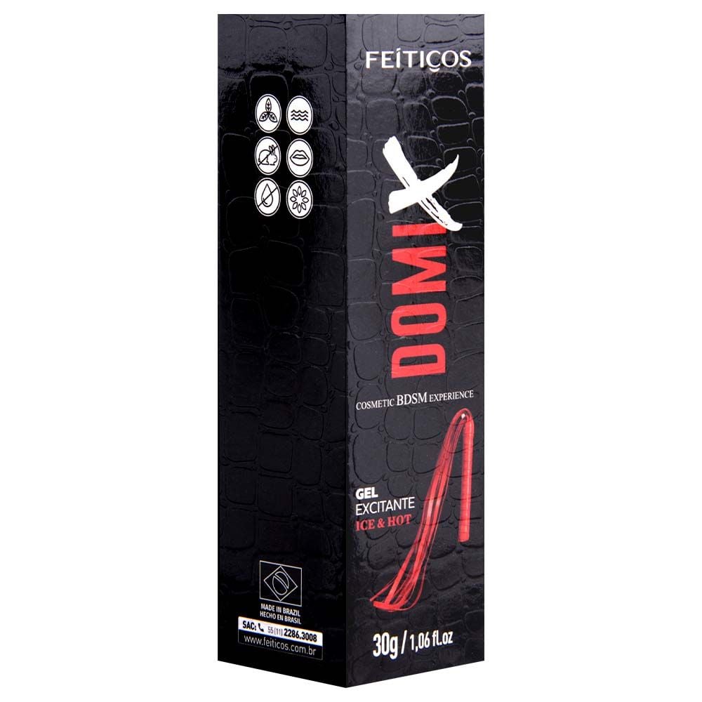 Adquira já o Domix Gel de Adestramento Ice & Hot 30g Feitiços e descubra o prazer de explorar sensações de aquecimento, frescor e excitação em suas experiências íntimas. Sinta o poder do toque, da ordem e da entrega com conforto e segurança!
