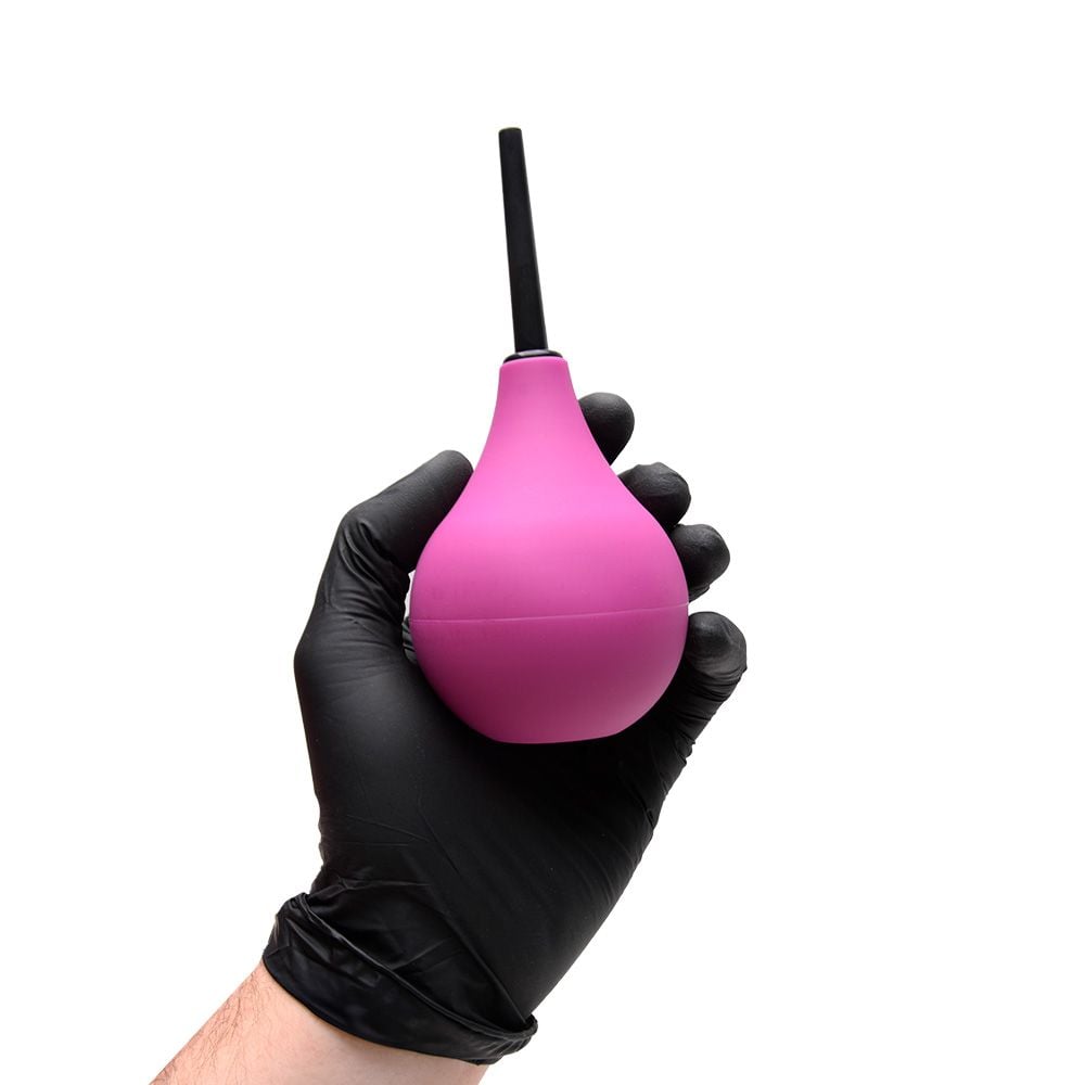 Pressione a bomba para retirar o ar e, em seguida, mergulhe a ponta em água ou no líquido desejado. Solte a pressão para encher o reservatório. Introduza o aplicador no ânus ou vagina de forma suave e aperte a bomba lentamente, liberando o líquido com controle e conforto.