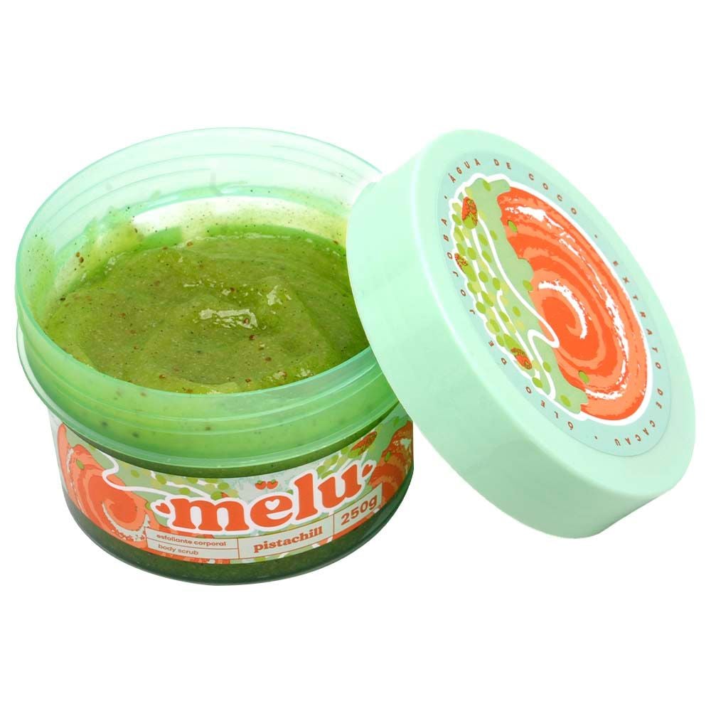 Esfoliante Corporal Pele Renovada Pistachill 250g Melu – Esfoliação Suave com Óleo de Jojoba e Água de Coco