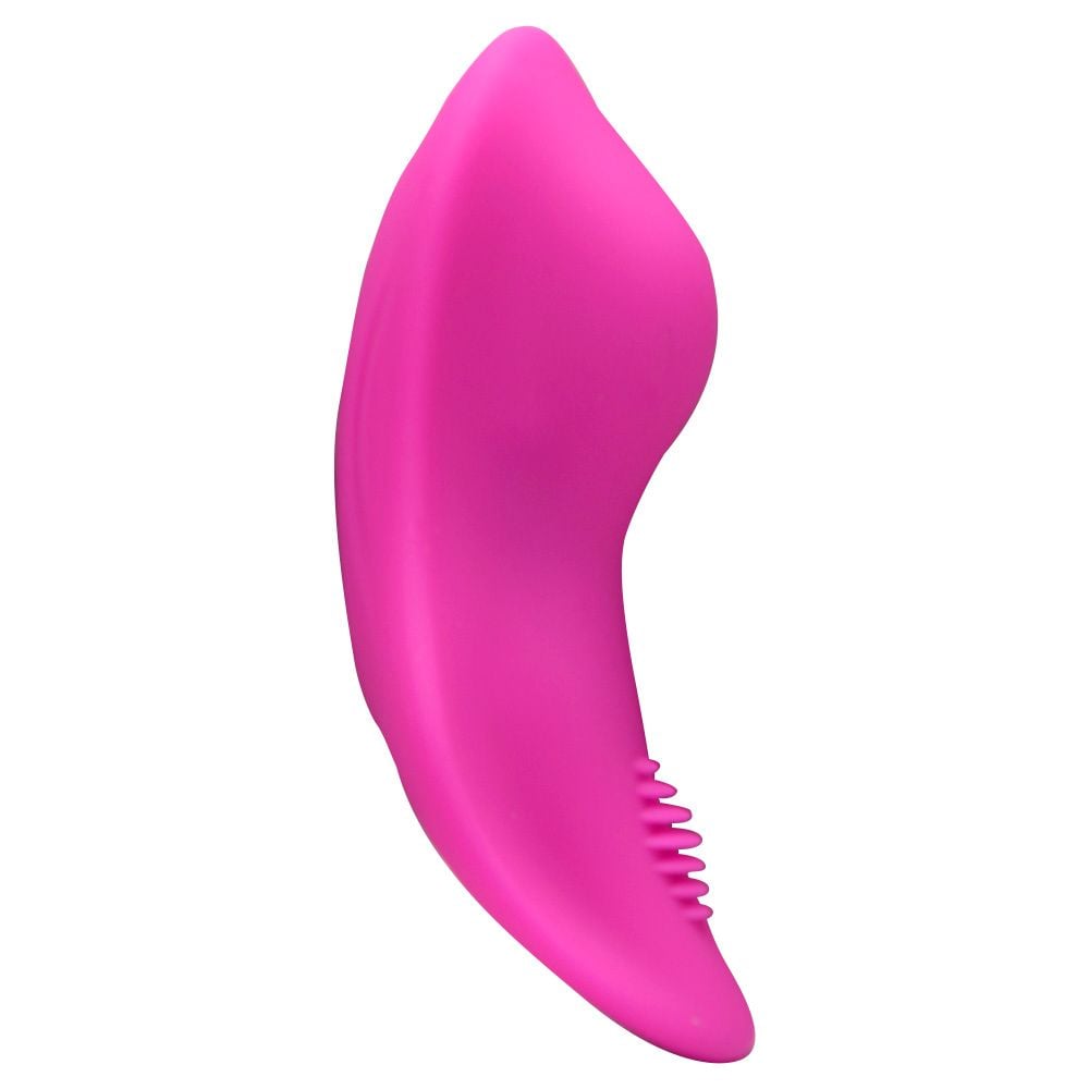 Seu formato foi pensado para encaixar com suavidade na calcinha, mantendo o estimulador estável e confortável durante o uso, inclusive em momentos fora de casa.