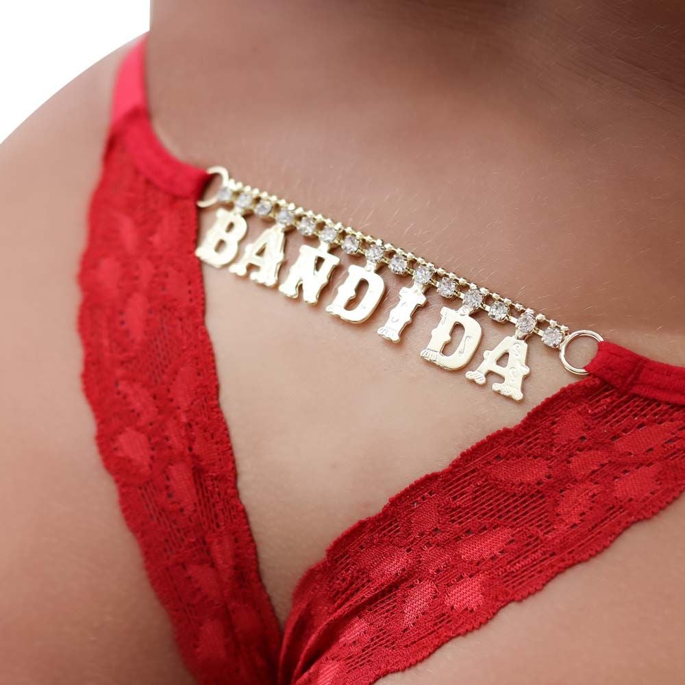 Design: Palavras sensuais em metal e strass na parte de trás, adicionando um toque de brilho e elegância.