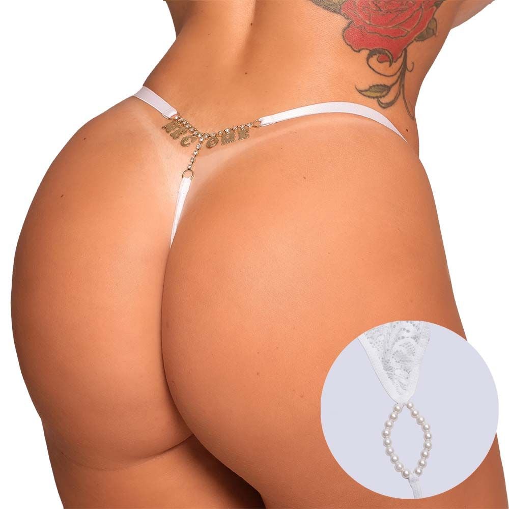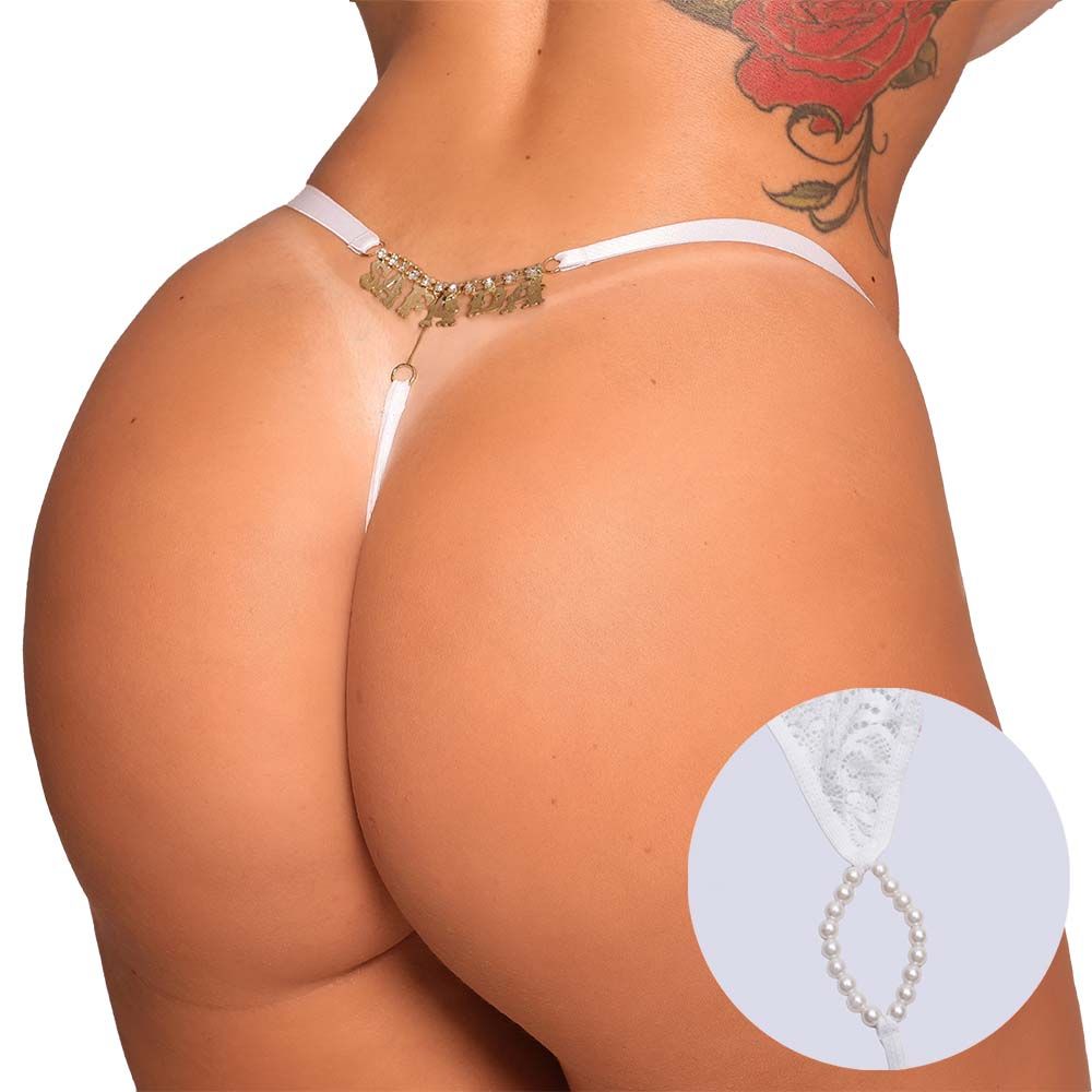 Fio Dental Tailandesa Branco Strass Frases – Tallyta Moda Apimentada. Uma peça que exala sedução e requinte, perfeita para momentos especiais e para quem gosta de surpreender com ousadia e estilo!