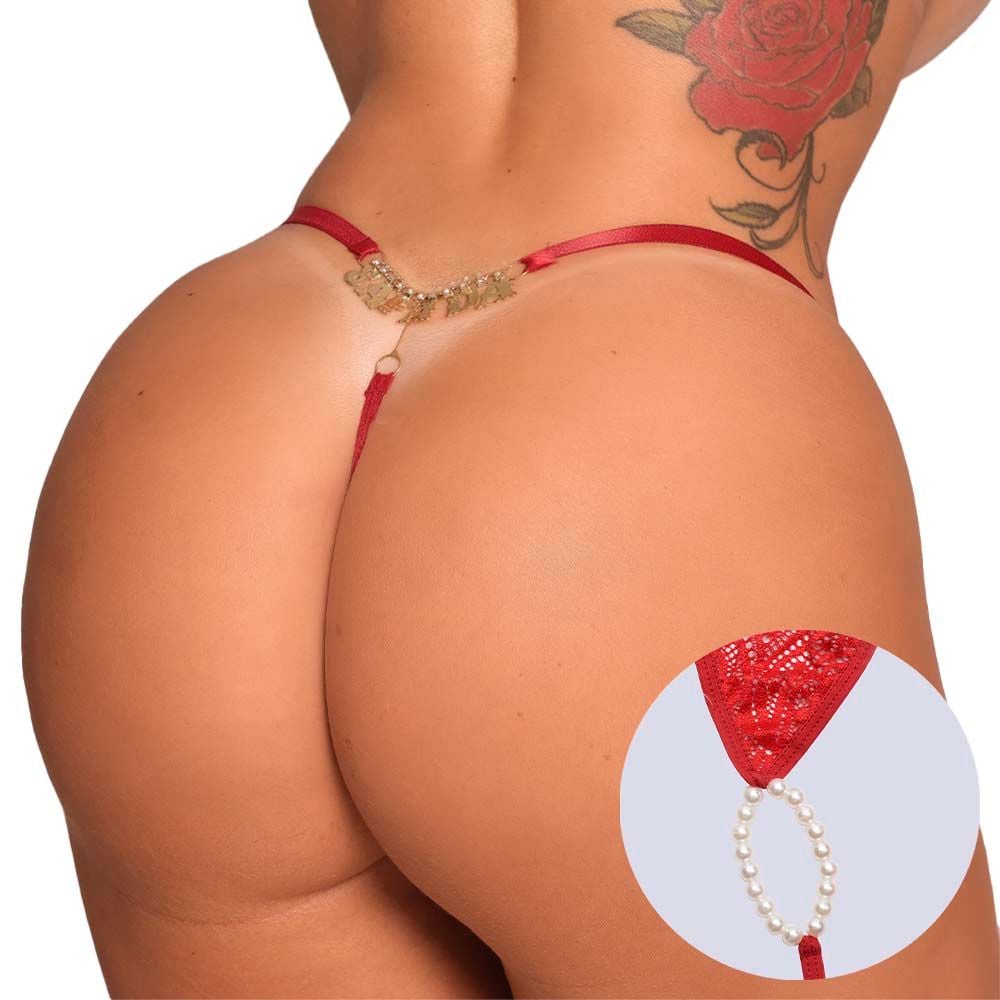 Fio Dental Tailandesa Vermelho Strass Frases...