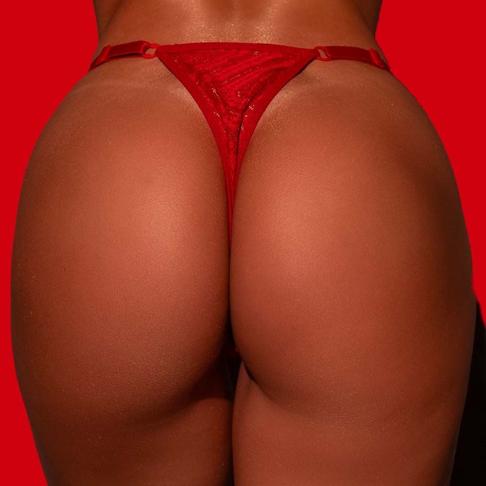 O destaque desta peça está no pingente com pedra vermelha, que adiciona um toque sofisticado e ousado ao design. Além disso, as tiras de strass delicadas trazem brilho e charme únicos, transformando a lingerie em uma verdadeira joia para seu corpo.