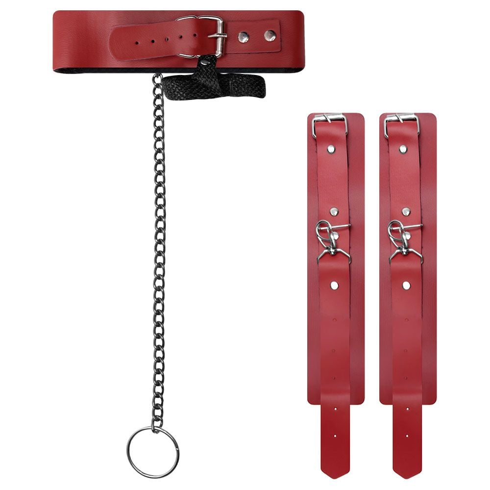 Harness Coleira com Algemas Traseiras e Guia Love Red Êxtase – Dominação, Estilo e Conexão em Cada Detalhe
