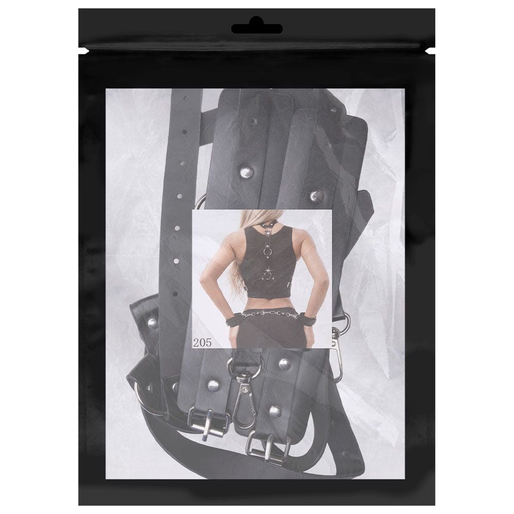 Fabricado em couro sintético de alta resistência, este harness apresenta rebites, correntes e fivelas que unem funcionalidade e visual fetichista. As algemas inclusas proporcionam experiências intensas, enquanto os ajustes no pescoço e na cintura garantem encaixe perfeito em diferentes corpos.