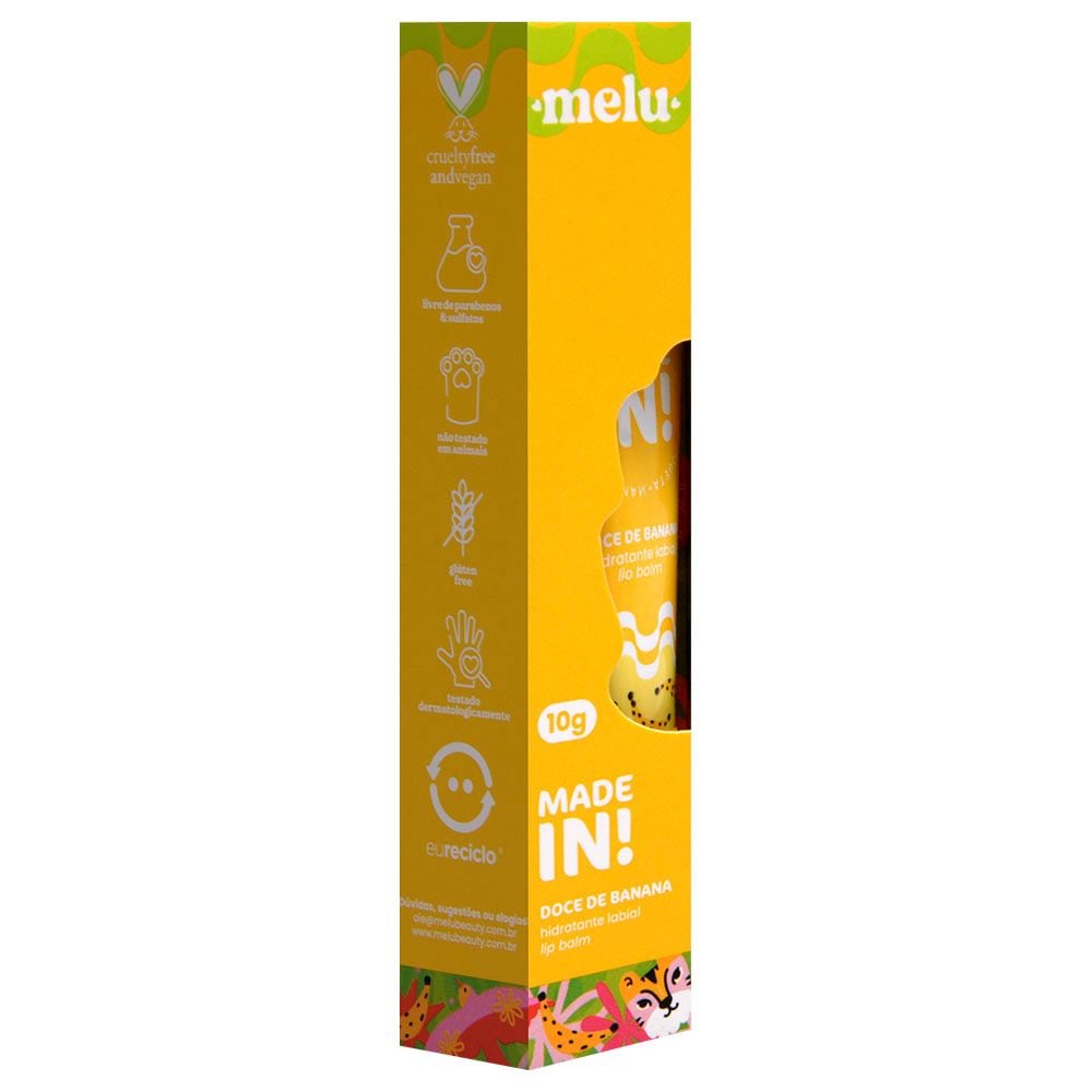 Hidratante Labial Doce de Banana Made In 10g Melu – Nutrição Profunda e Proteção Contra o Ressecamento