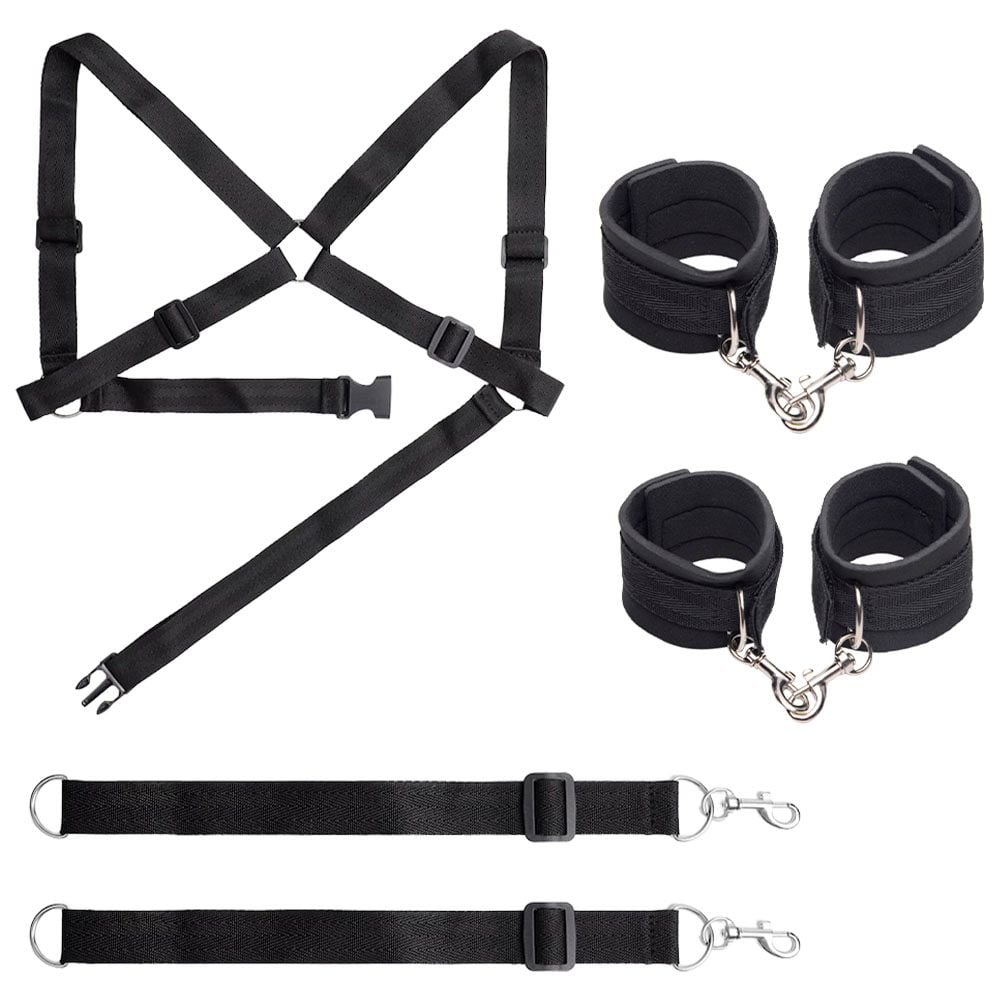 Kit completo 4 em 1 com restrição peitoral, algemas e tiras.