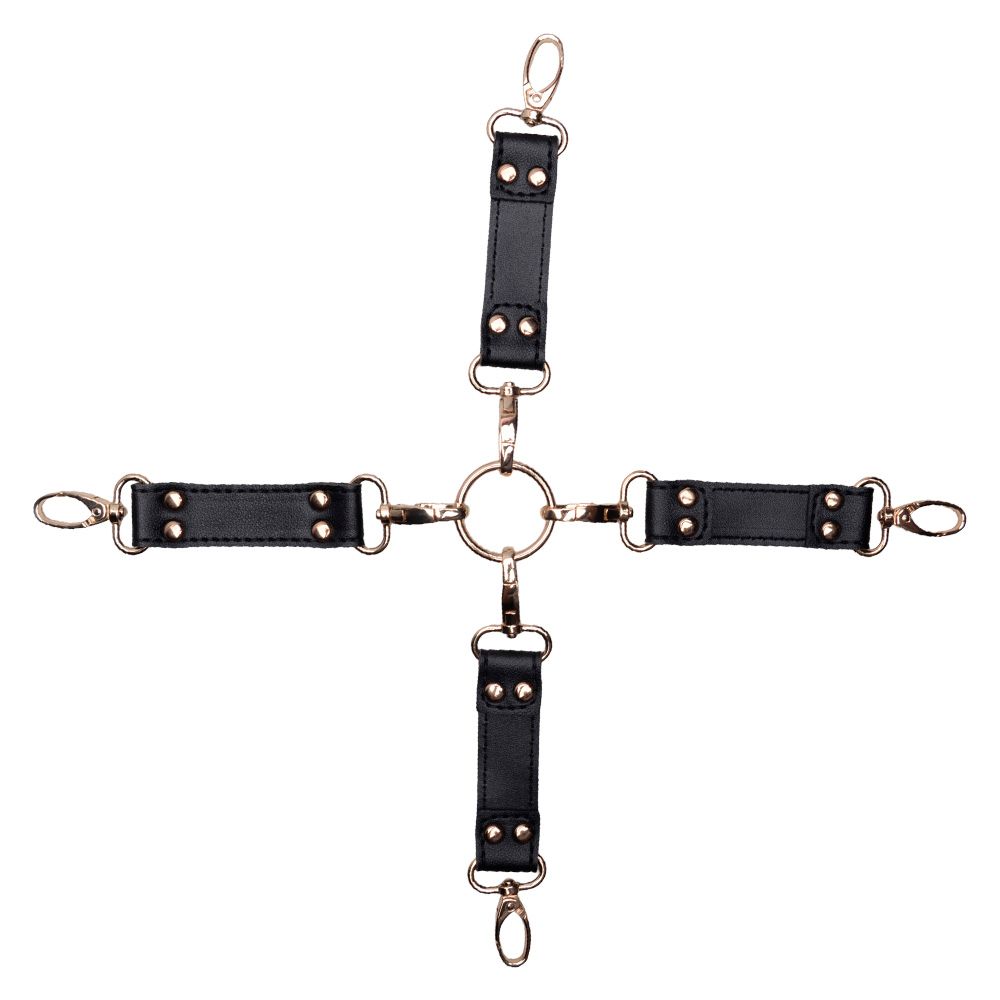 Fixe as algemas nos pulsos, coxas e tornozelos conforme a postura desejada.