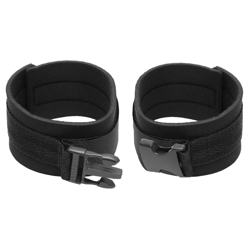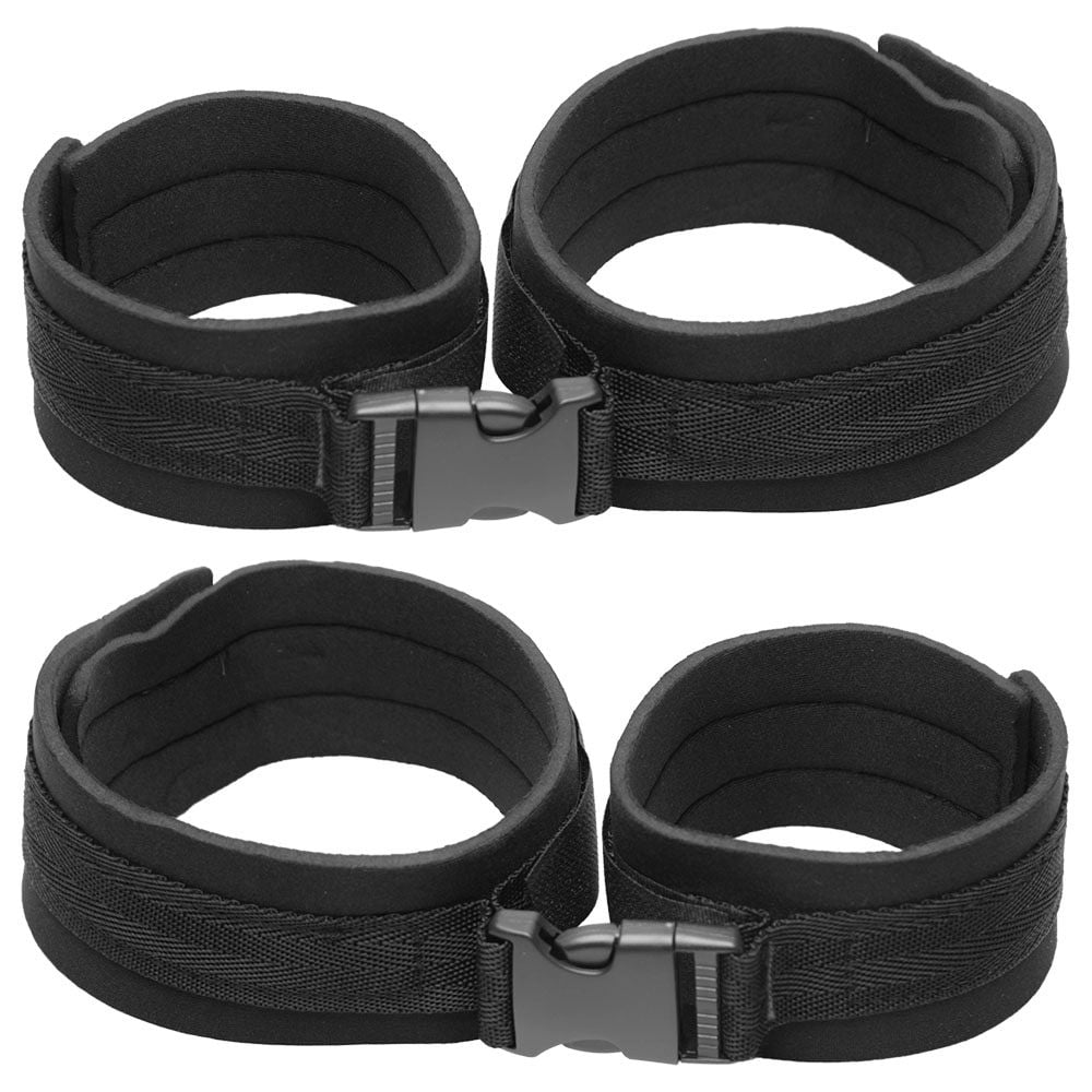 Conecte os pulsos ou tornozelos às tiras usando as fivelas universais.