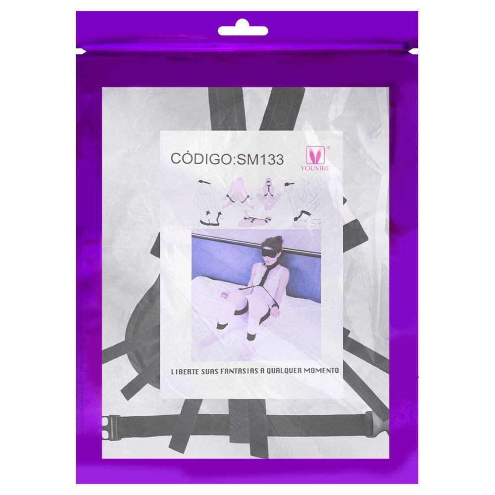 Com fivelas universais e tiras ajustáveis, o conjunto permite criar posições variadas com firmeza e segurança, adaptando-se a diferentes corpos e níveis de experiência. A venda amplia a sensibilidade ao toque, enquanto a coleira e as algemas proporcionam aquela sensação deliciosa de entrega total, perfeita para quem deseja elevar o prazer a um próximo nível.
