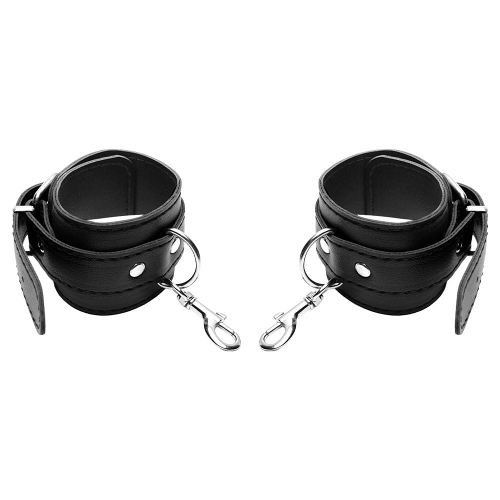Kit 3 em 1 com algemas de pulso, algemas de backhand, algemas de coxa e coleira com guia.