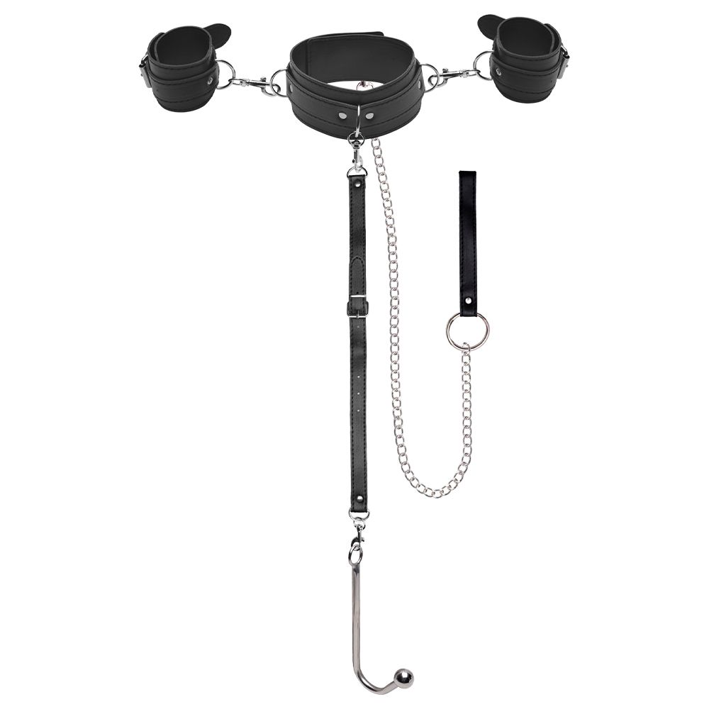 Composto por gancho anal metálico, coleira, algemas ajustáveis, cinto e corrente de tração, o kit permite desde contenções clássicas até cenários de submissão altamente ousados. O gancho anal, firme e estimulante, eleva a experiência a um novo patamar, proporcionando pressão, preenchimento e orgasmos mais fortes. Todos os acessórios podem ser usados juntos ou separadamente, criando infinitas possibilidades de jogo.