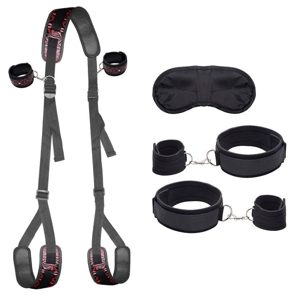 O suporte para coxas mantém as pernas elevadas e abertas, deixando o corpo exposto, vulnerável e pronto para ser dominado. As algemas firmes com fechamento em velcro proporcionam segurança e conforto, enquanto a venda acrescenta suspense, arrepio e sensibilidade apurada ao toque. Versátil, o conjunto é removível, podendo ser usado com ou sem as tiras de coxa, adaptando-se a diferentes fantasias e níveis de intensidade.