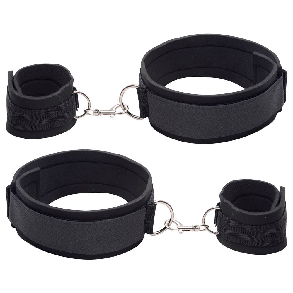 Conjunto de restrição completo com algemas, suporte para coxas e venda.