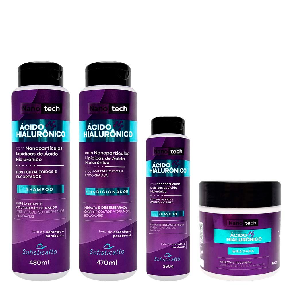 O Kit Capilar Ácido Hialurônico Sofisticatto devolve vida, brilho e hidratação aos cabelos, deixando-os muito mais macios, alinhados e rejuvenescidos. Um tratamento completo para quem busca fios realmente hidratados e radiantes.
