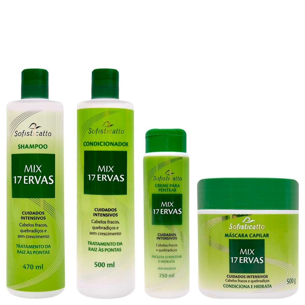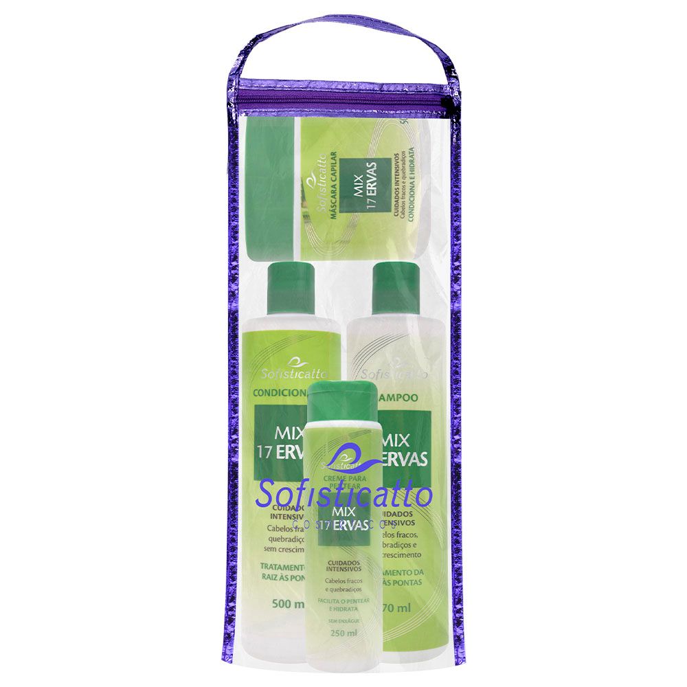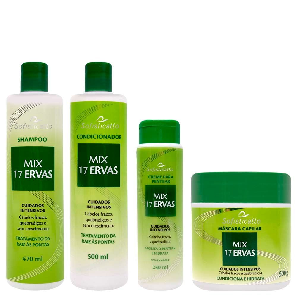 O Kit Capilar Mix 17 Ervas Sofisticatto foi desenvolvido para oferecer cuidados intensivos aos cabelos fracos, quebradiços e com dificuldade de crescimento. Sua fórmula poderosa reúne a força das 17 ervas tradicionais, atuando diretamente da raiz às pontas para fortalecer, nutrir profundamente e estimular o crescimento saudável dos fios.