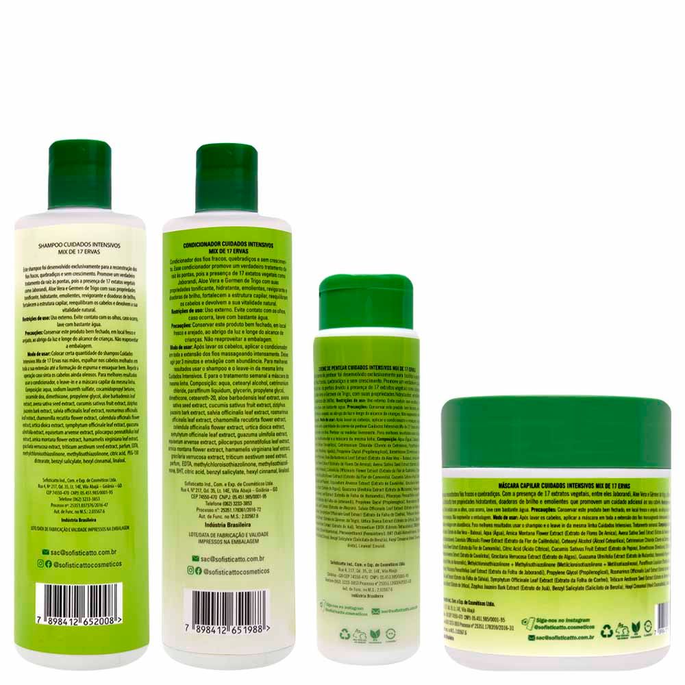 Revitalize completamente seus fios com o Kit Mix 17 Ervas Sofisticatto e descubra cabelos mais fortes, resistentes, nutridos e com crescimento saudável. Um tratamento poderoso para devolver vida e força aos seus cabelos desde a primeira aplicação.