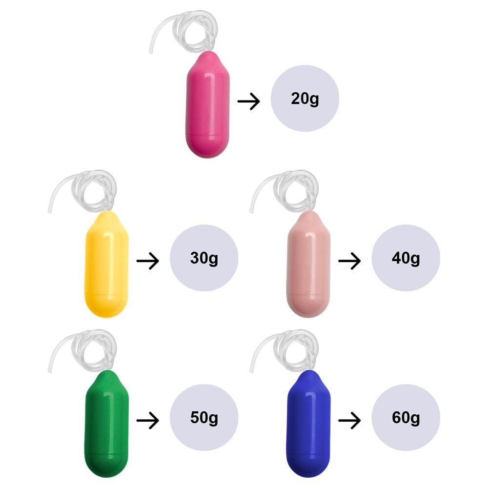 Conteúdo: 5 cones com pesos variados, para evolução gradual nos exercícios.