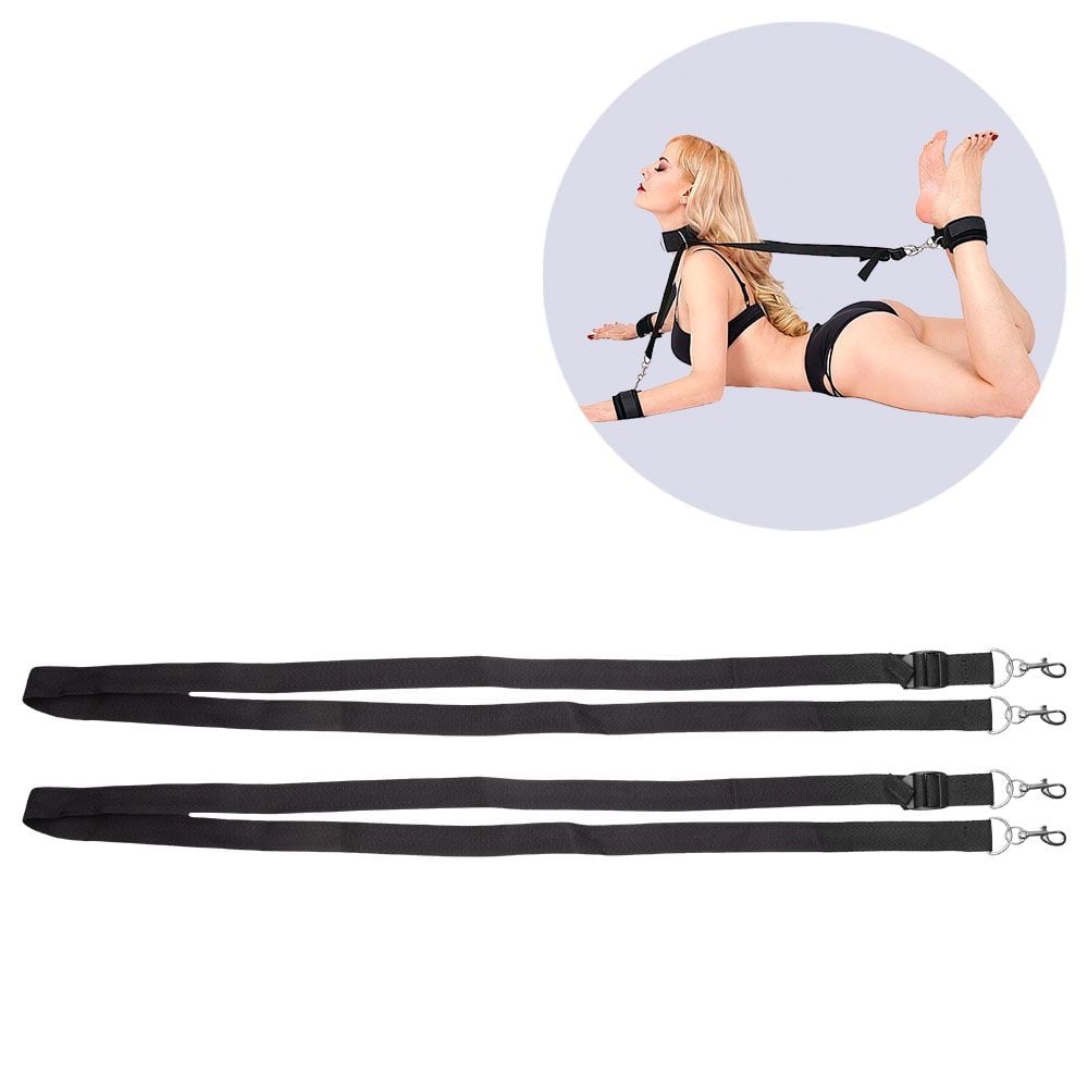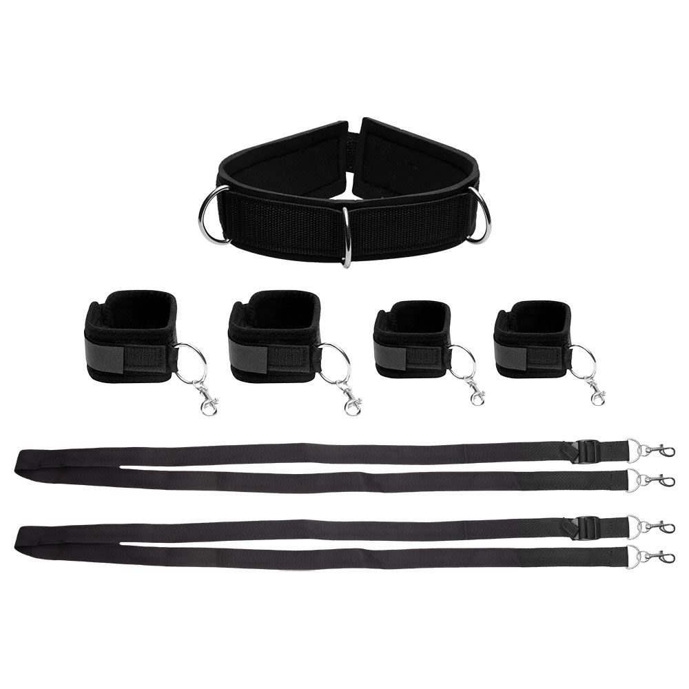 Este conjunto é composto por acessórios interligados para criar uma imobilização firme e ao mesmo tempo confortável, favorecendo o jogo de submissão e dominação: