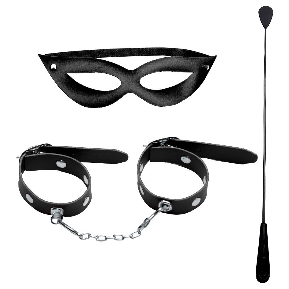 Vista a máscara no parceiro(a) para criar um ambiente de mistério. Utilize a chibata para explorar diferentes níveis de prazer com toques suaves ou mais intensos. Coloque as algemas bracelete ajustando para um encaixe seguro e confortável. Sempre pratique a comunicação aberta e estabeleça consentimento mútuo antes e durante o uso.