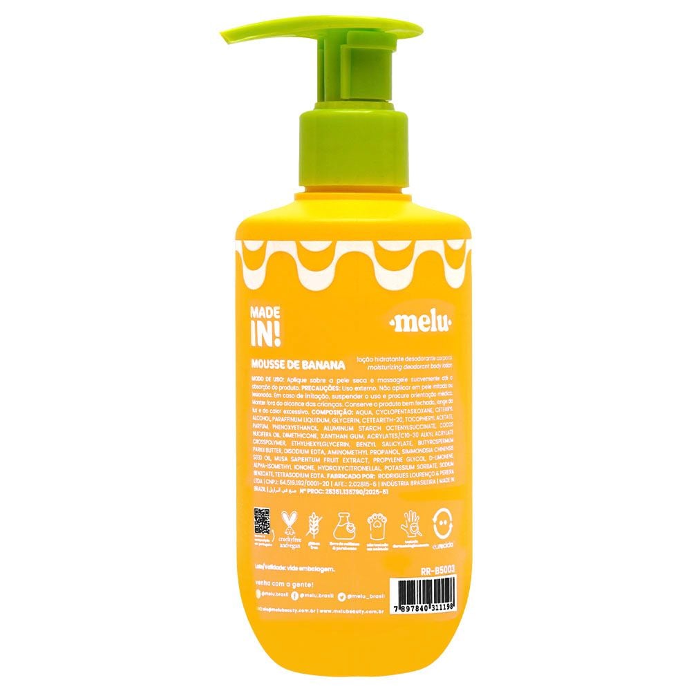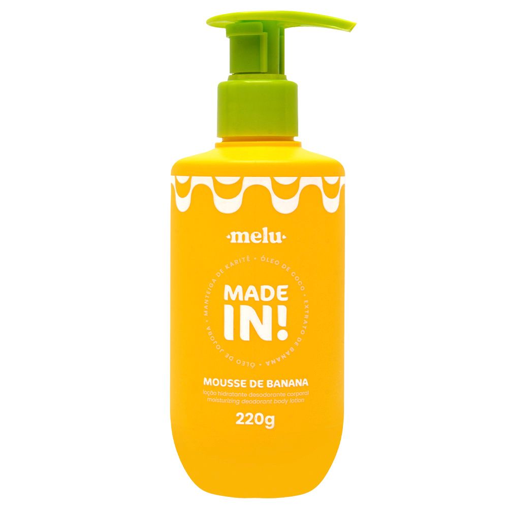 Loção Hidratante Mousse de Banana Made In 220g Melu – Hidratação Corporal com Aroma Doce e Textura Leve