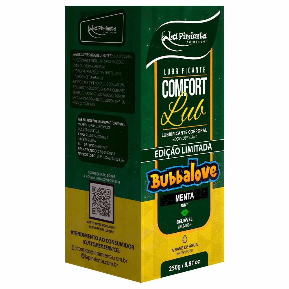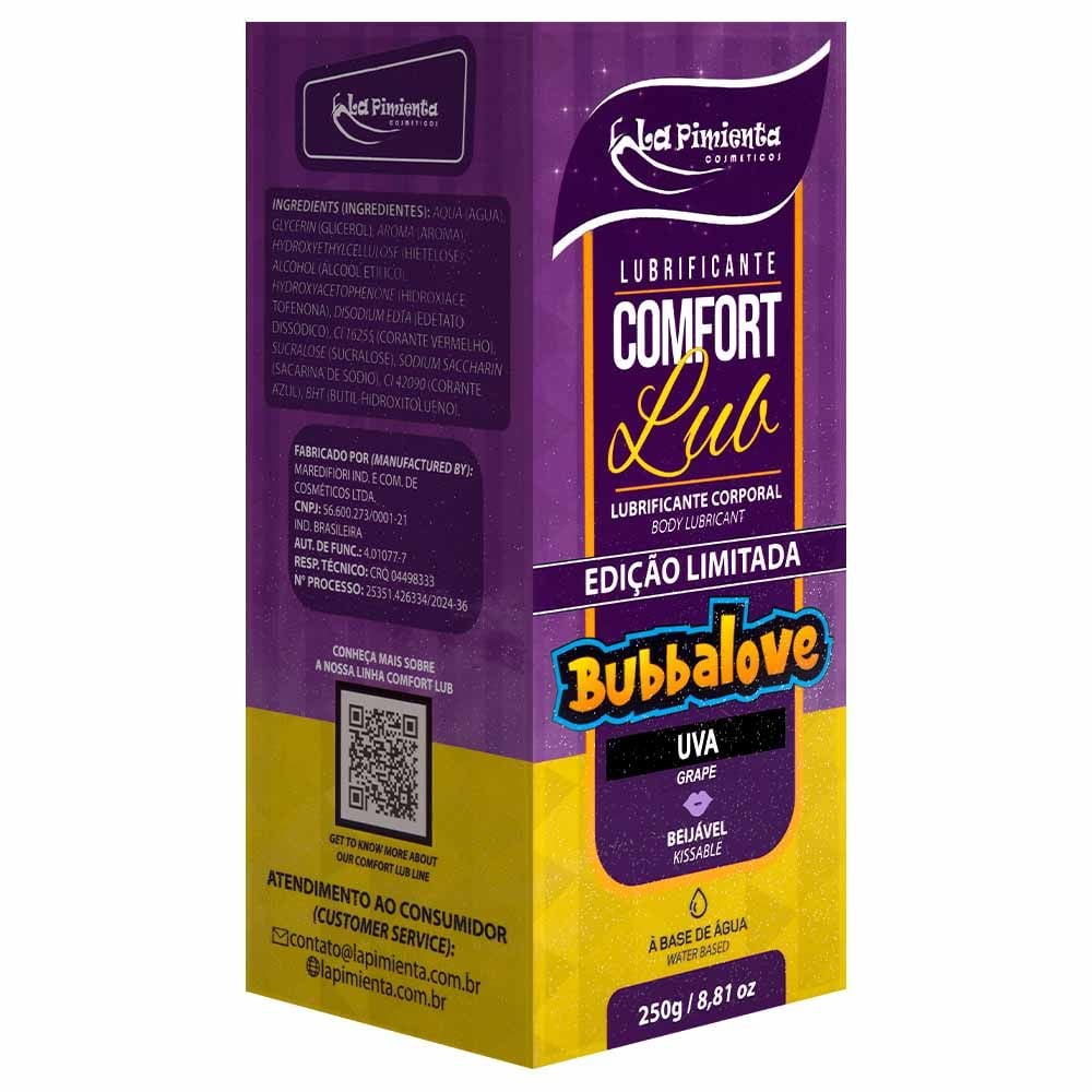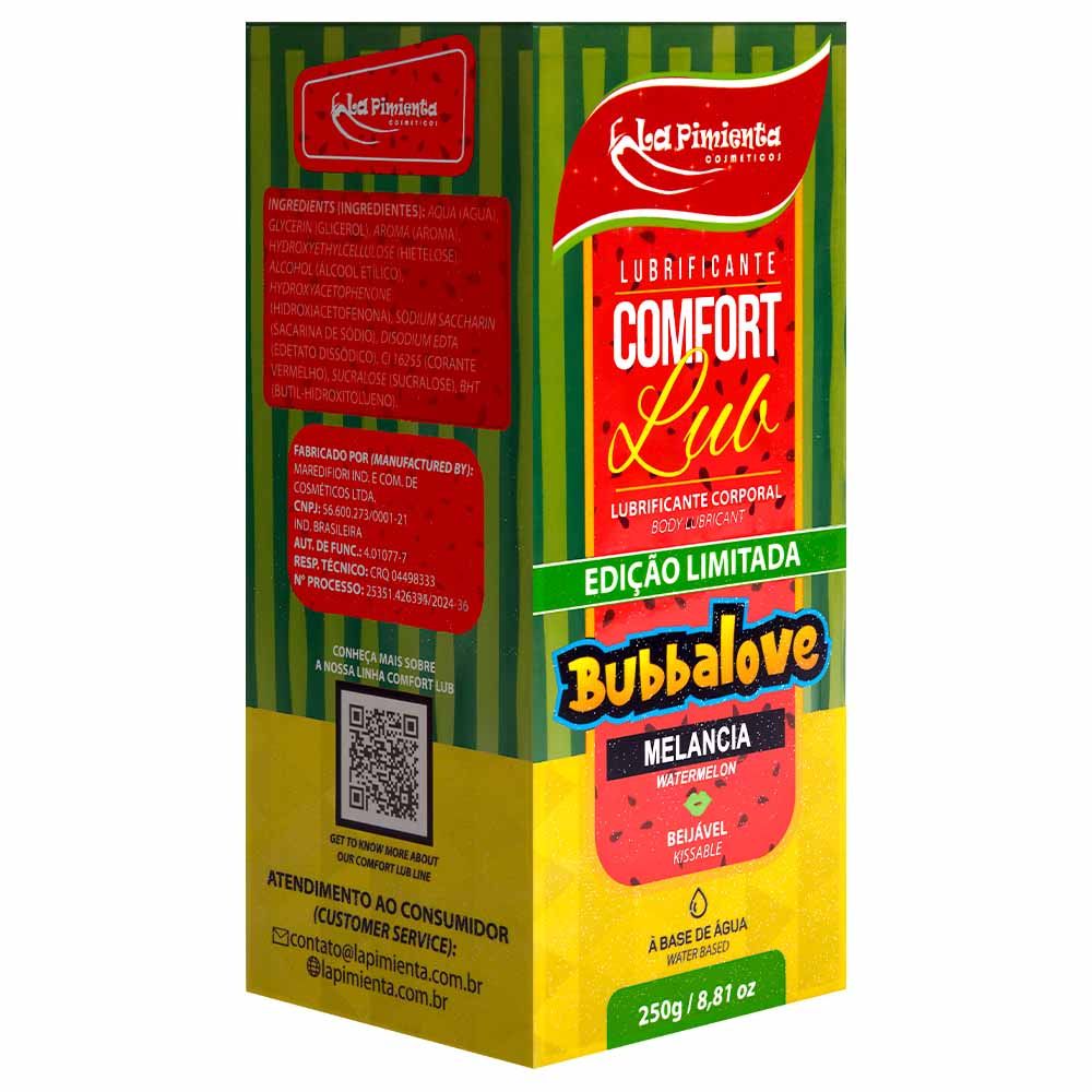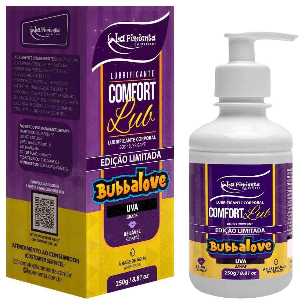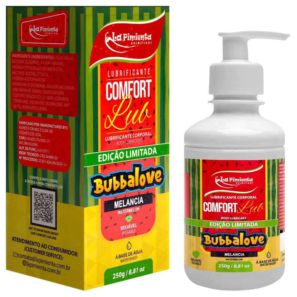 O Lubrificante Comfort Lub Bubbalove 250g da La Pimienta combina estímulo sensorial, alta performance e um sabor irresistível. Perfeito para quem deseja explorar novas formas de conexão íntima, com conforto e diversão. Garanta já o seu e deixe o prazer escorregar sem limites!