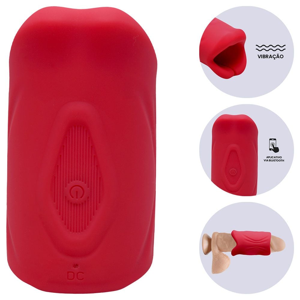 Contém: 1 Masturbador Formato de Boca + Cabo USB