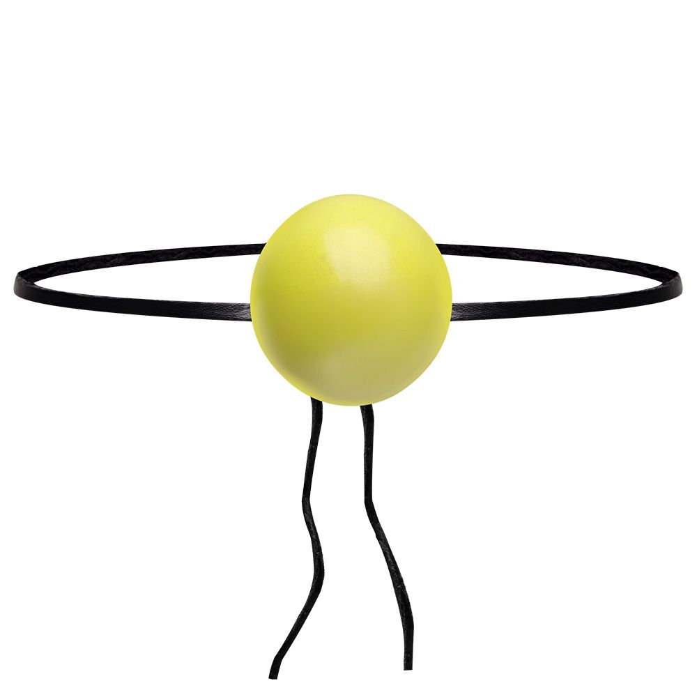 Bola de borracha macia e tira ajustável em couro sintético de alta qualidade.