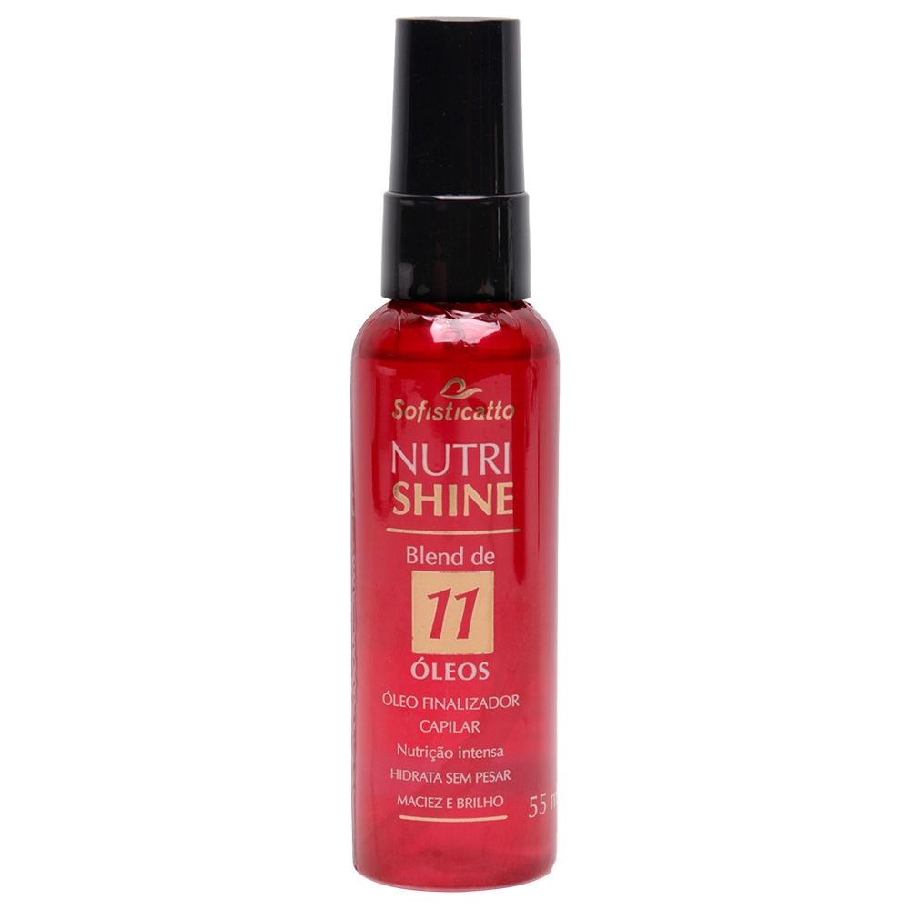 O Óleo Nutrishine Blend Capilar da Sofisticatto é um elixir de nutrição profunda e brilho radiante. Formulado com um blend exclusivo de 11 óleos naturais, ele atua diretamente na fibra capilar, restaurando, hidratando e protegendo os fios sem deixá-los pesados. Um verdadeiro tratamento de luxo para cabelos sedosos, disciplinados e luminosos.