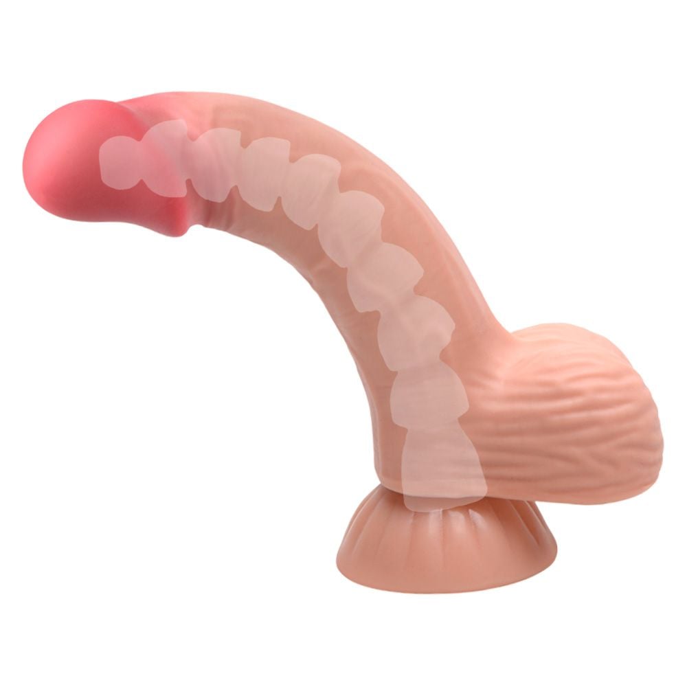 A tecnologia de dupla densidade combina uma camada externa suave com um núcleo interno firme, criando a estrutura ideal para uma penetração satisfatória, firme e extremamente realista.