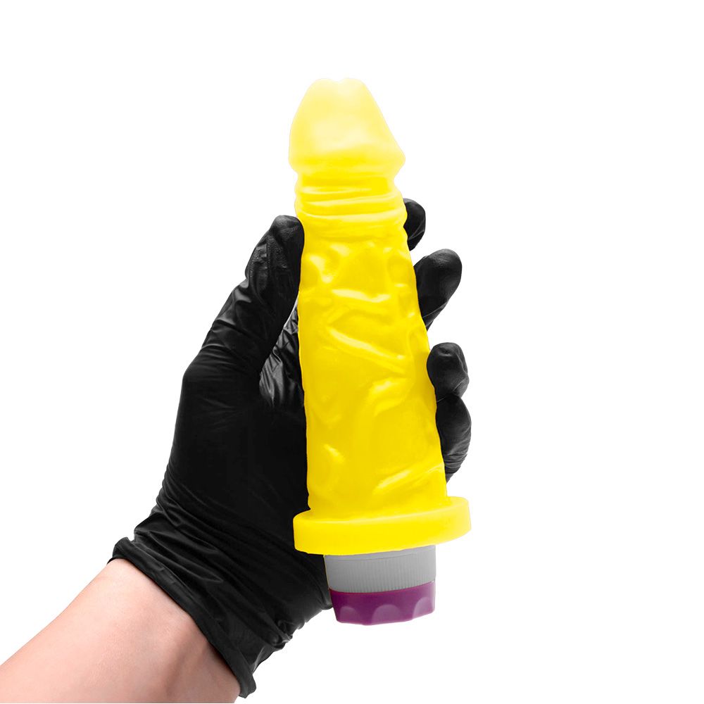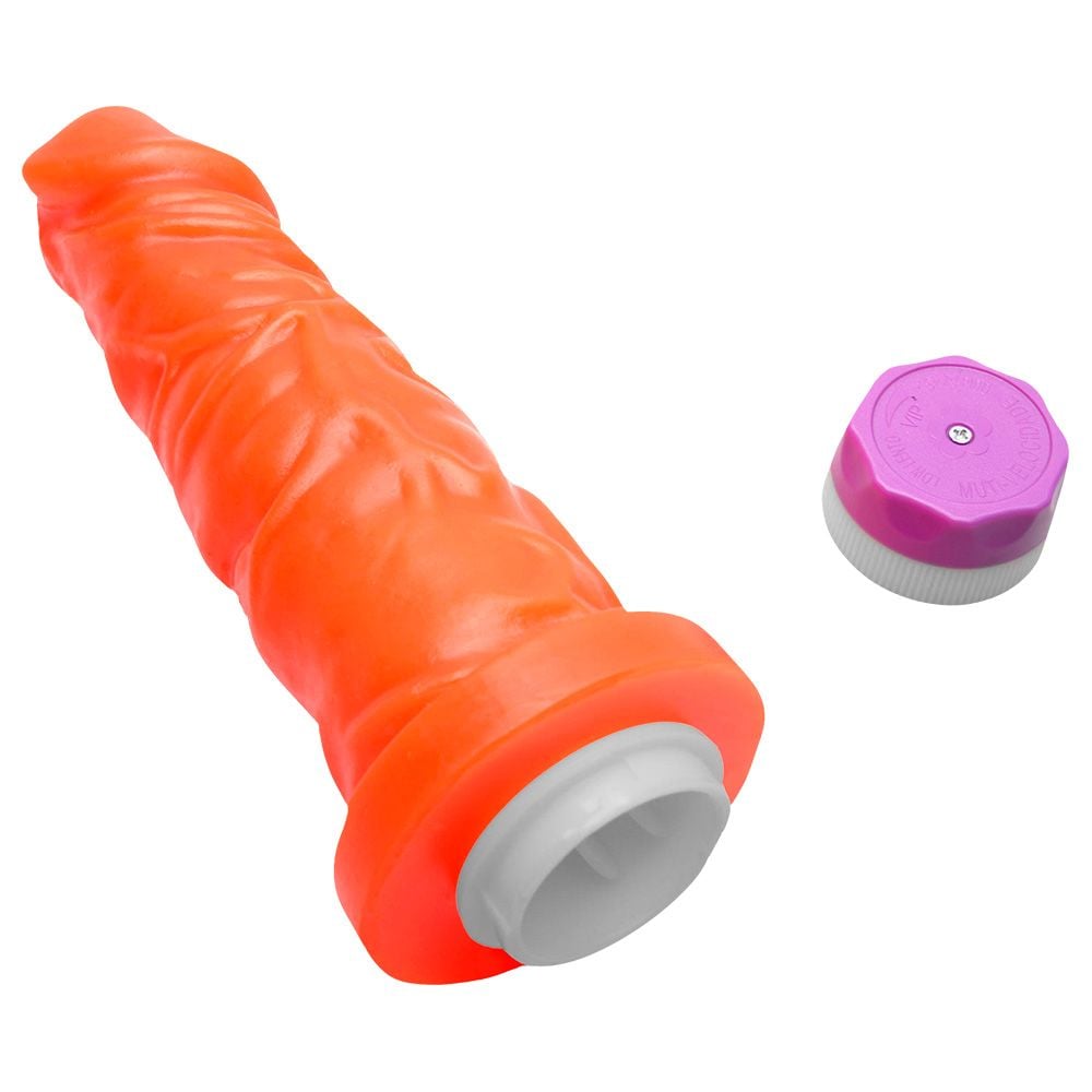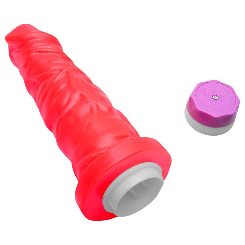Abra a tampa na base da prótese e insira 2 pilhas AA (não inclusas). Feche o compartimento e gire o botão para acionar a vibração. Ajuste a intensidade conforme desejado. Após o uso, retire as pilhas e higienize com água e sabão neutro.
