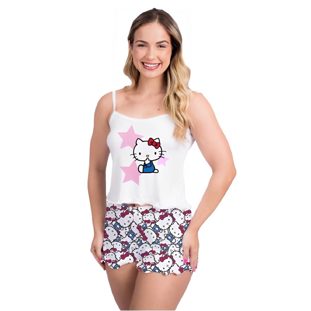 Pijama Curto Vivi Hello Kitty 5 Gota De Sonho