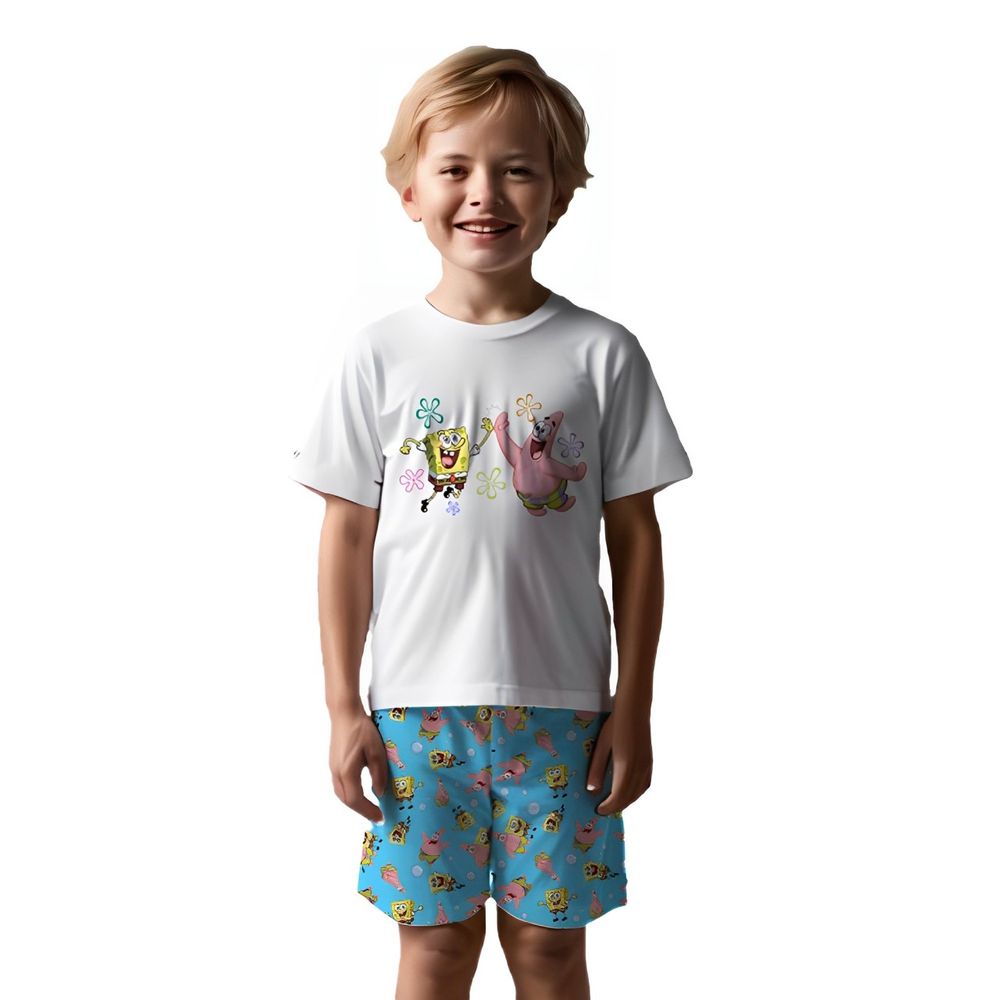 Pijama Davi Infantil Bob e Patrick – Alegria, Conforto e Diversão Direto do Fundo do Mar