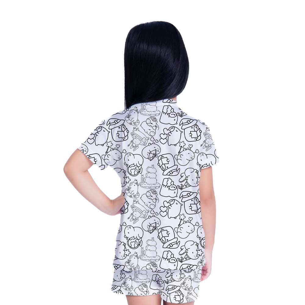 Adquira agora o Pijama Infantil Lana de Colorir Manga Curta Estampa Capivara da Gota de Sonho e proporcione aos seus pequenos noites criativas, divertidas e cheias de aconchego.