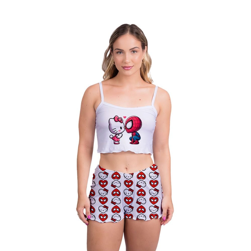 Pijama Virgínia Estampa Hello Kitty Com SpiderMan Da Gota De Sonho