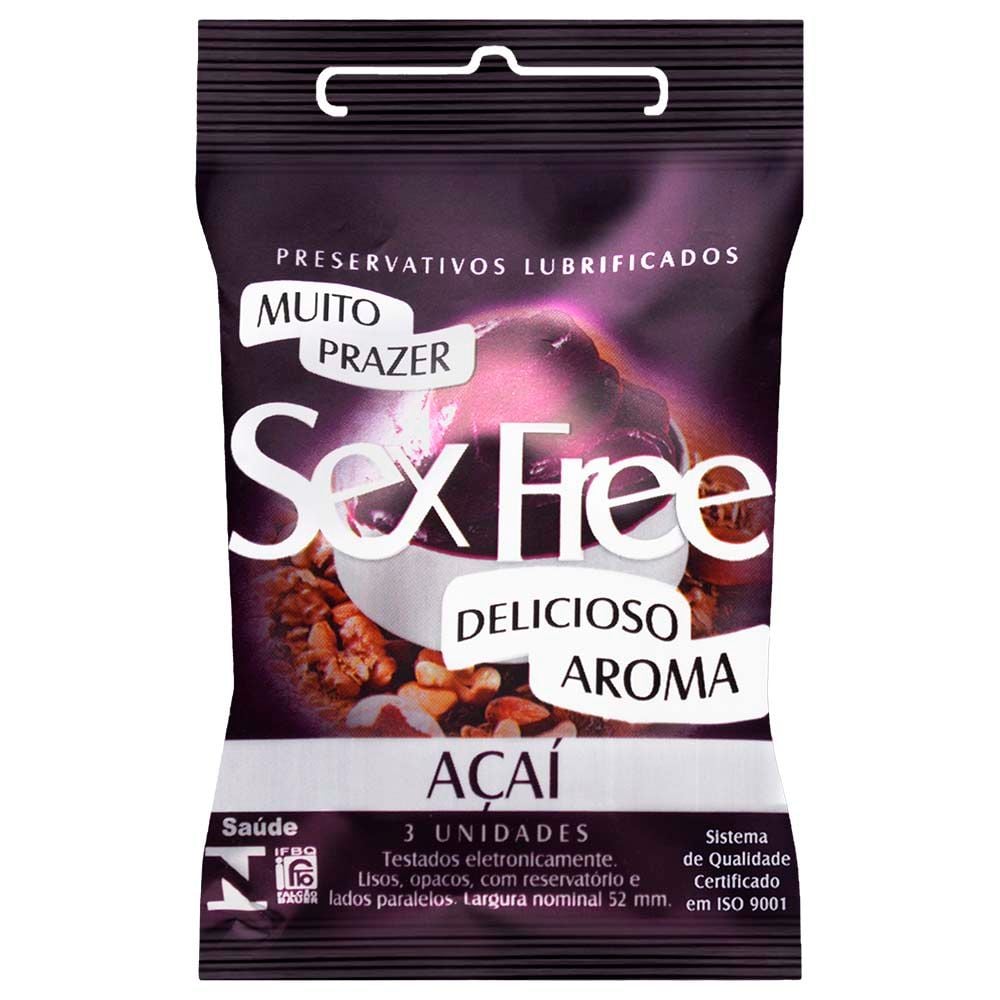 Experimente o Preservativo Açaí 3 Unidades Sex Free e intensifique sua intimidade com prazer, segurança e o aroma inconfundível do açaí. Uma experiência única que une proteção e excitação em cada detalhe.