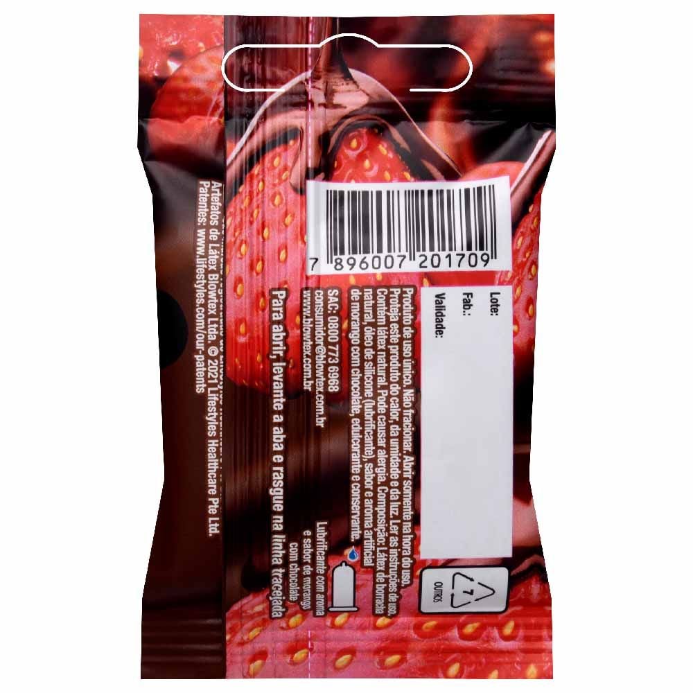 Preservativo Morango Com Chocolate 03 Unidades Blowtex